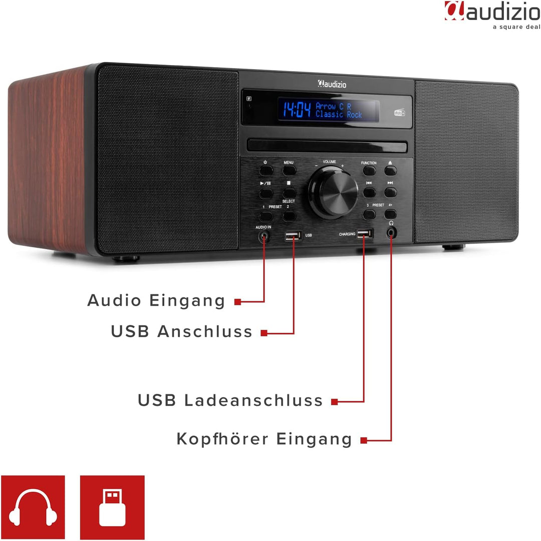 - Die Audizio Prato ist ein DAB Bluetooth Radio mit DAB + und UKW Empfang. Der eingebauter CD Spieler kann Ihre Liebelings CD´s abspielen. Ein Stereo DAB Radio im wunderbaren Design für jung und alt