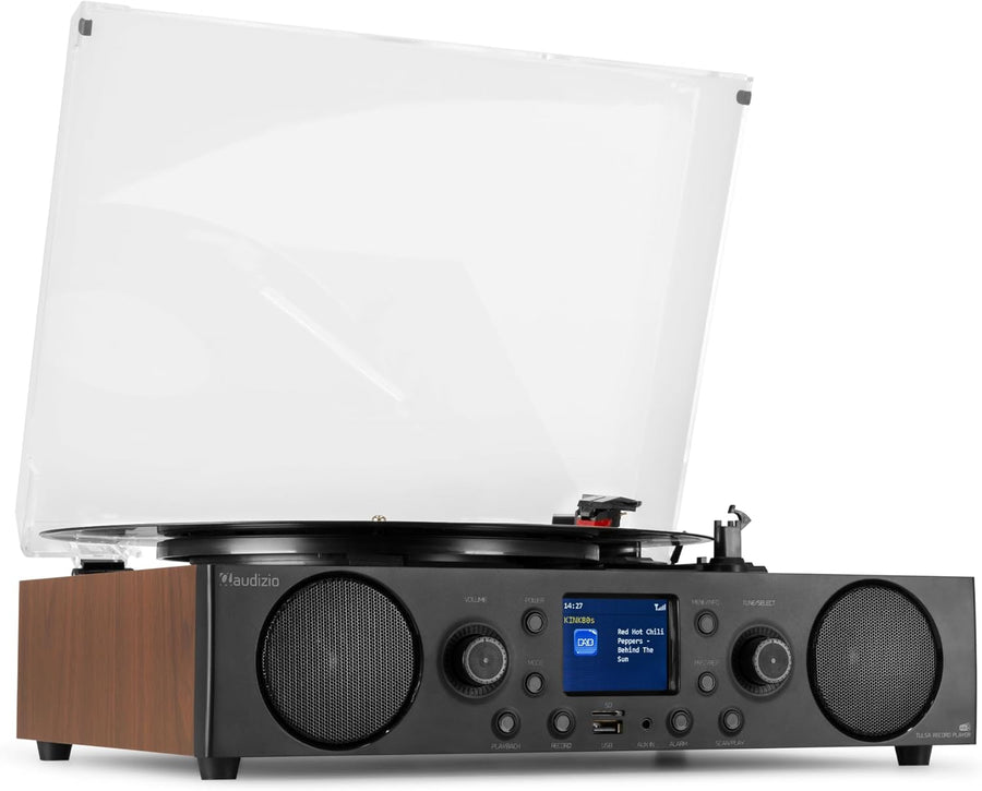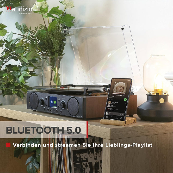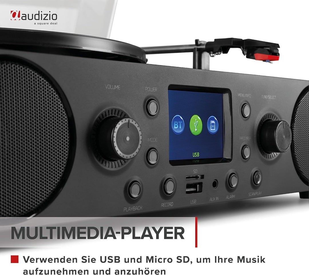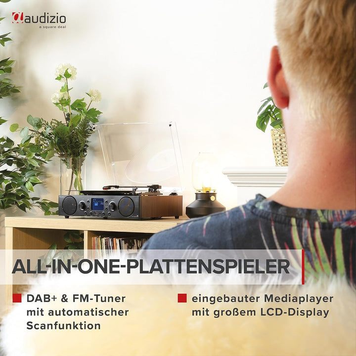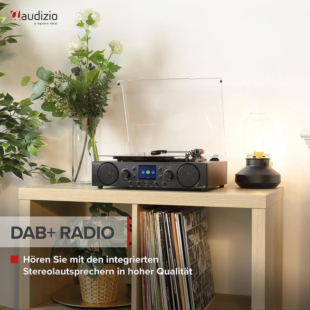 - Musik Anlage : Mit diesem Plattenspieler können Sie nicht nur Ihr Plattensammlung hören. Sie haben ein UKW und DAB+ Radio, einen integrierten MP3 Player und einen Bluetooth Empfänger
