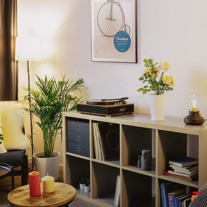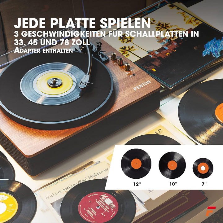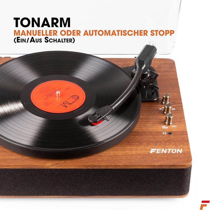 - RCA und Kopfhörer-Anschluss: Über den Cinch-Ausgang können Sie diesen Fenton Plattenspieler einfach an ein bestehendes Audiosystem anschliessen. Ausserdem gibt es eine Kopfhörerbuchse