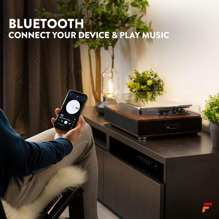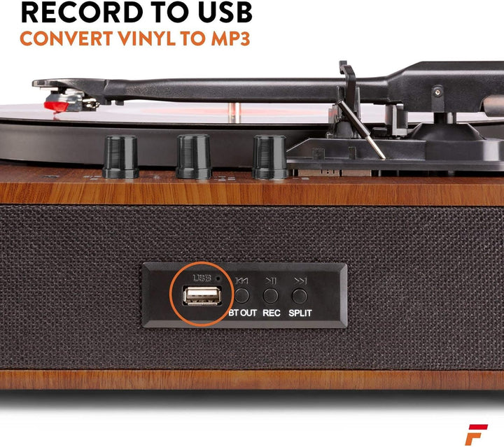 - USB Plattenspieler mit Bluetooth: Dank Bluetooth Ausgang können Sie Ihre Schallplatten auf ihre Kopfhörer übertragen, oder streamen Sie Ihre MP3-Musik von Ihrem Handy auf den Plattenspieler mit Boxen