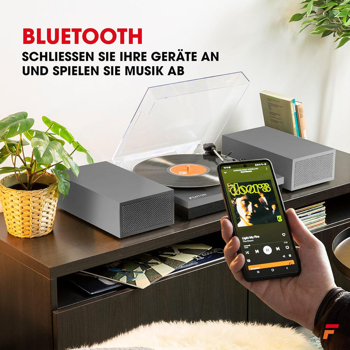 - Dank der Bluetooth Funktion, können Sie Ihre Lieblingsmusik über den Plattenspieler streamen, Sie haben somit eine Stilvolle kleine Beschallungsanlage für Ihr Zuhause