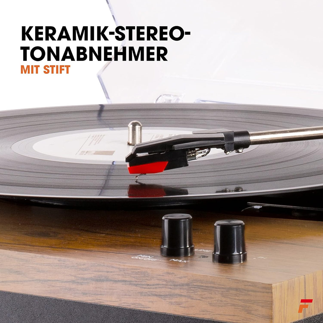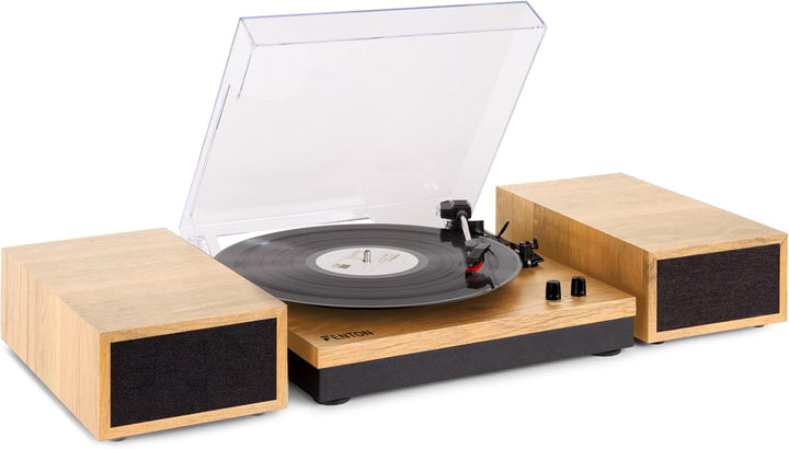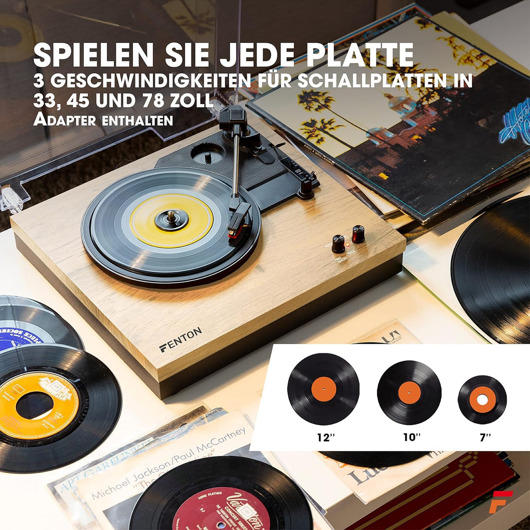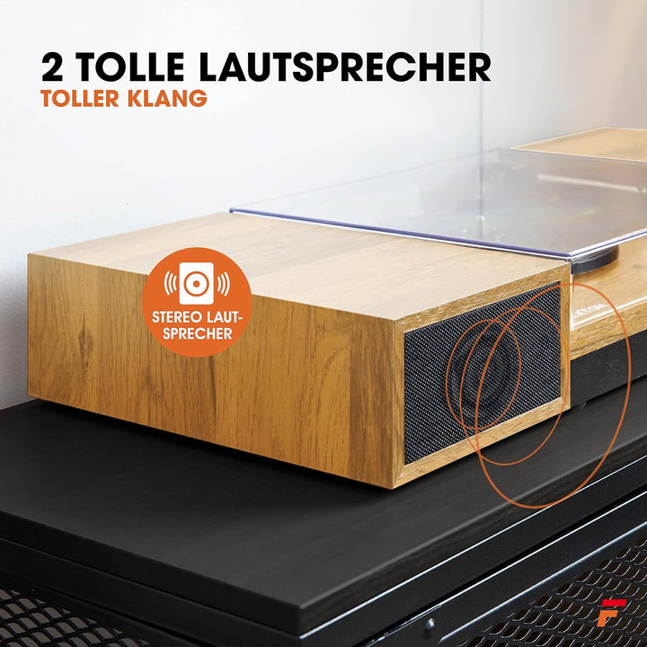 - Dank eingebauter Verstärker spielt der Fenton RP165L Vynil Plattenspieler den Sound über die mitgelieferte externe Stereo Lautsprecher ab. Geniessen Sie einen tollen typischen Retrosound