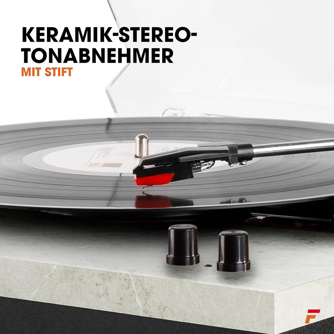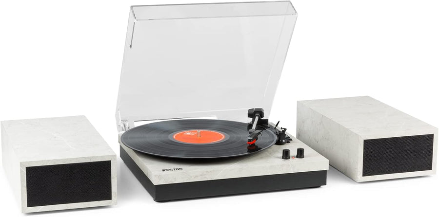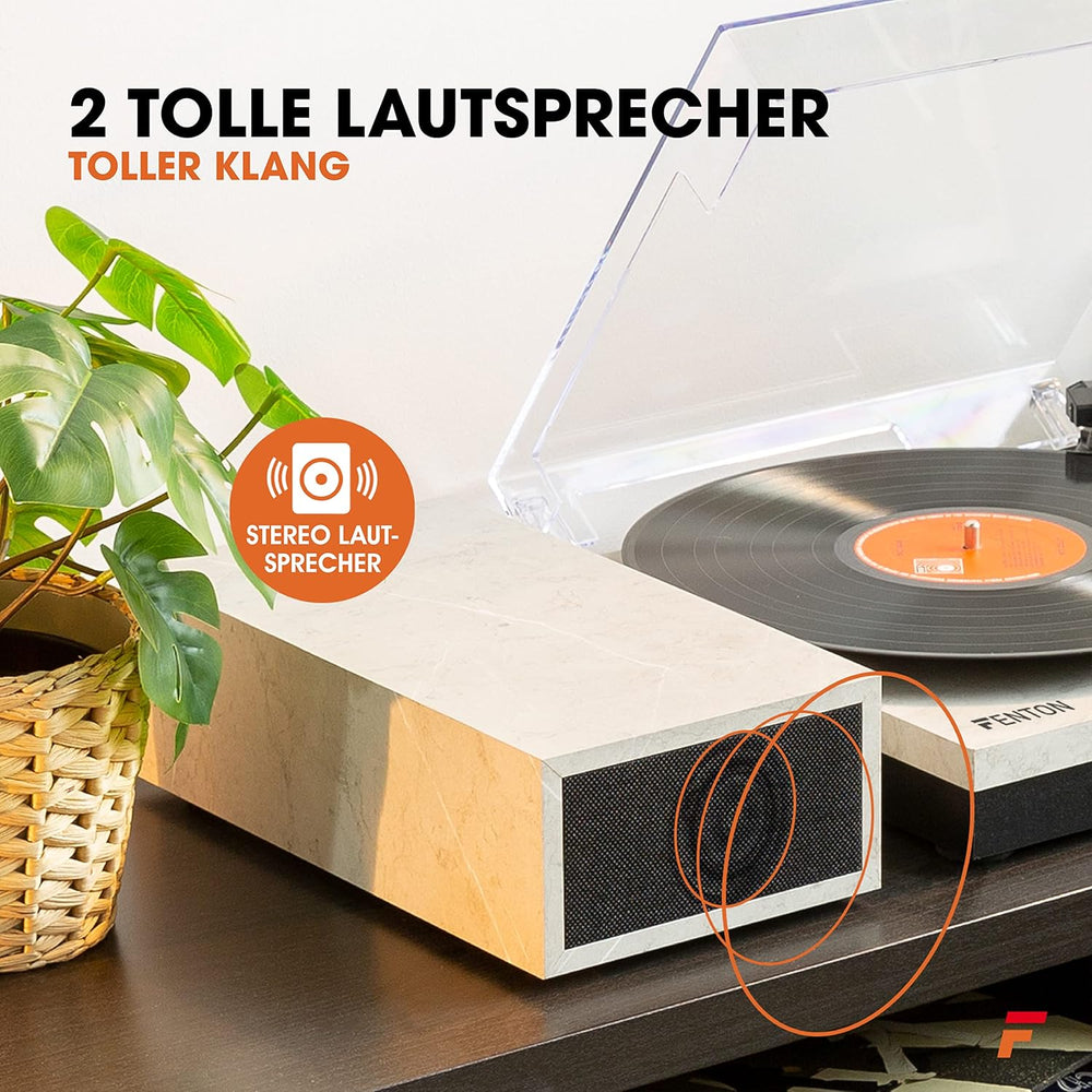 - Dank eingebauter Verstärker spielt der Fenton RP165M Vynil Plattenspieler den Sound über die mitgelieferte externe Stereo Lautsprecher ab. Geniessen Sie einen tollen typischen Retrosound