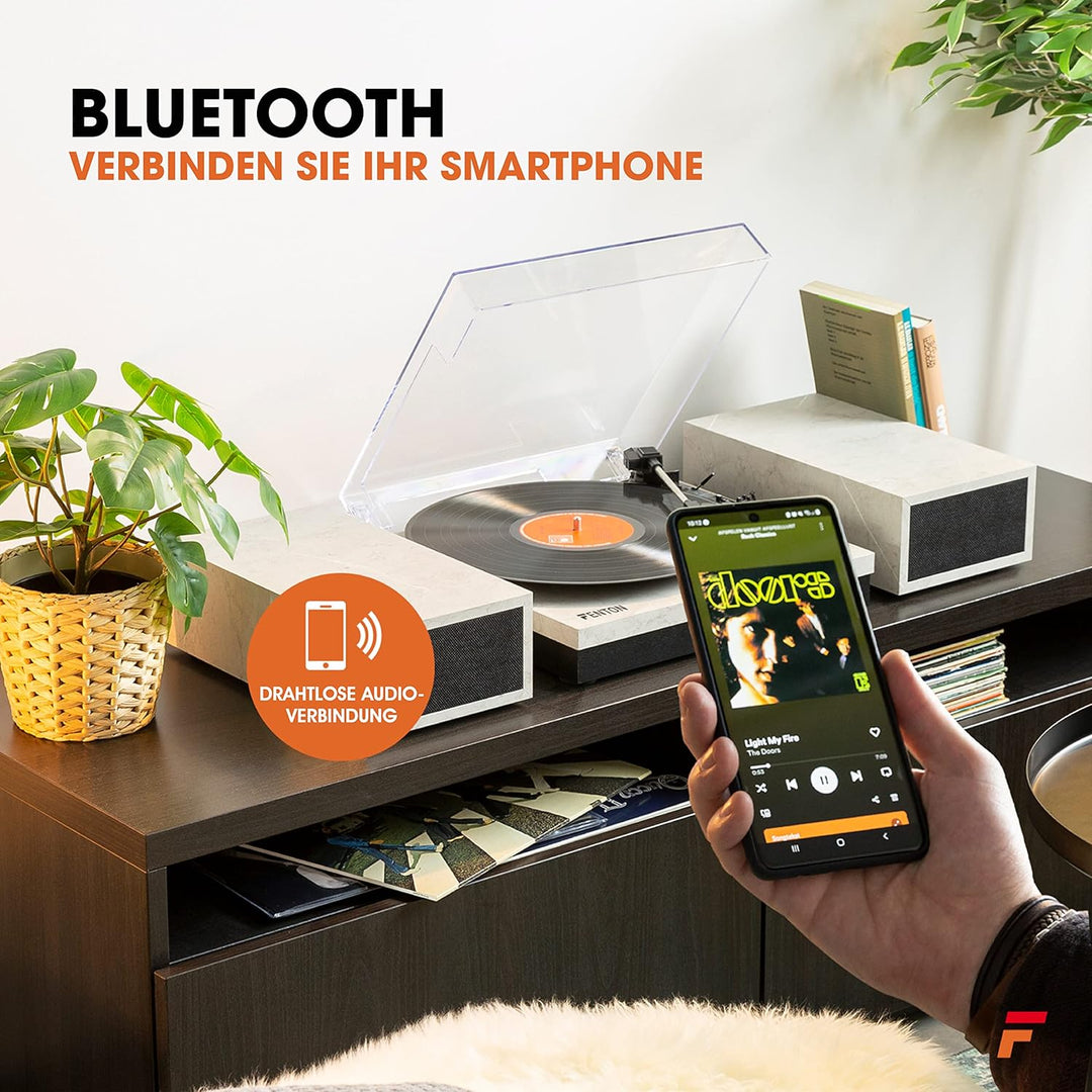 - Selbstverständlich besitzt dieser Plattenspieler Bluetooth, und können Sie Ihre Lieblingsmusik über den Plattenspieler mit Boxen streamen, Sie haben somit eine Stilvolle Bluetooth Speaker für Ihr Zuhause