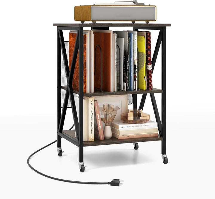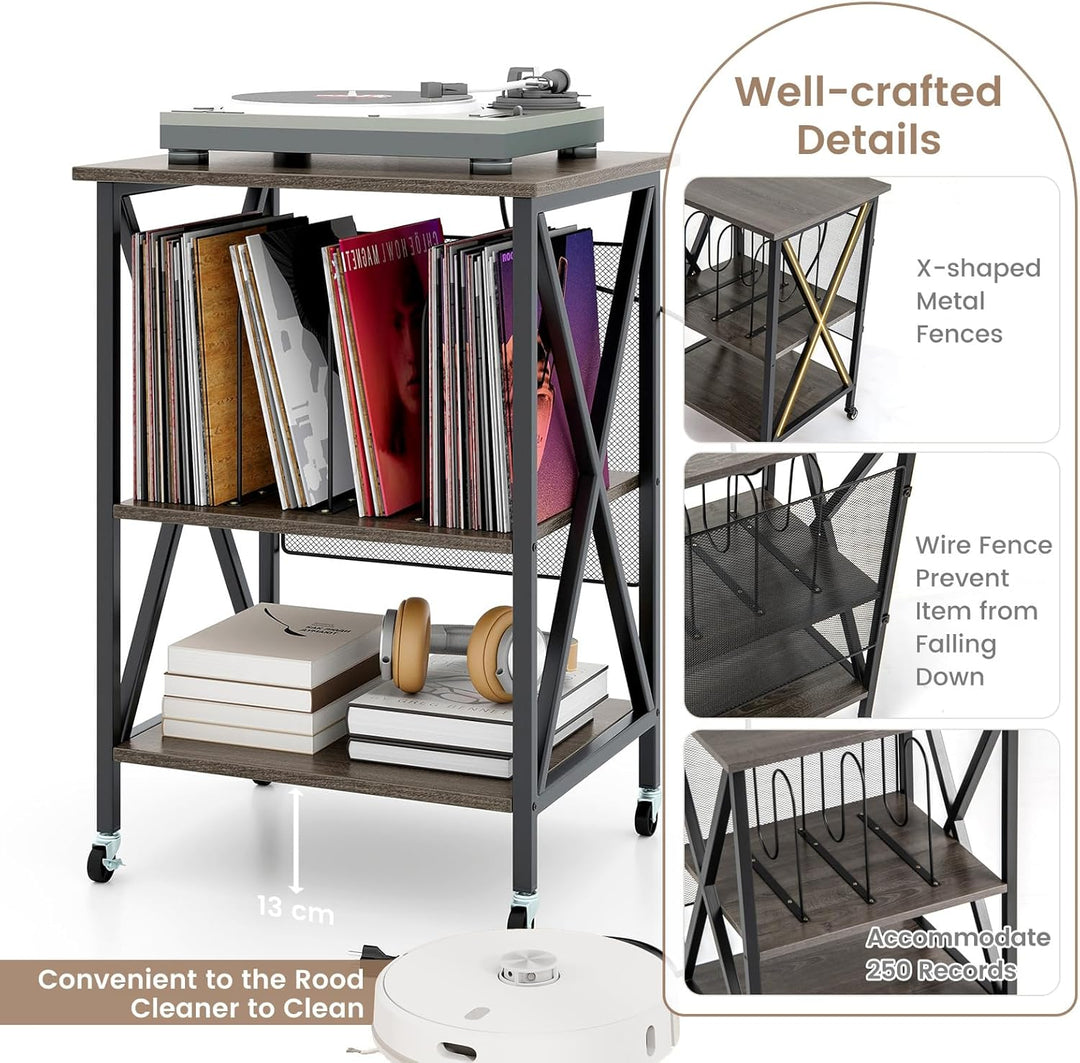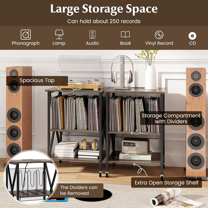 - VIELSEITIGE AUFBEWAHRUNG: Dieses Plattenspieler-Regal bietet eine 3-stufige Aufbewahrungslösung für Ihre CDs und Schallplatten, einschliesslich einer geräumigen Plattenspieler-Tischplatte und 2 offenen Trennwänden.