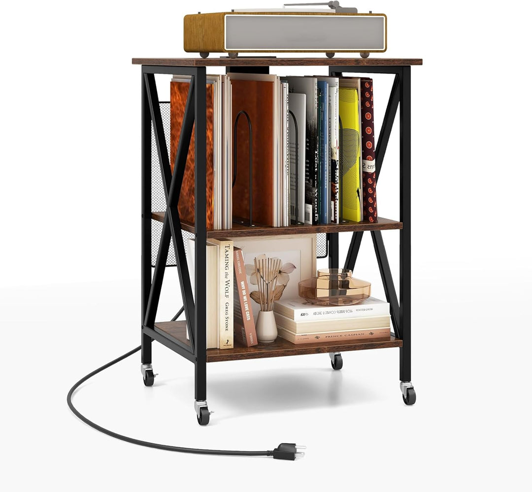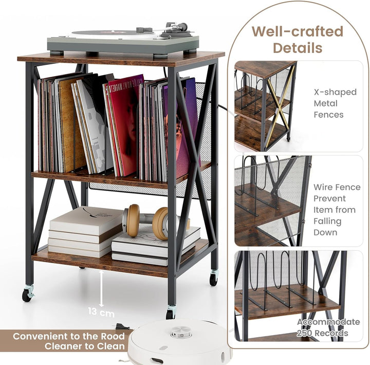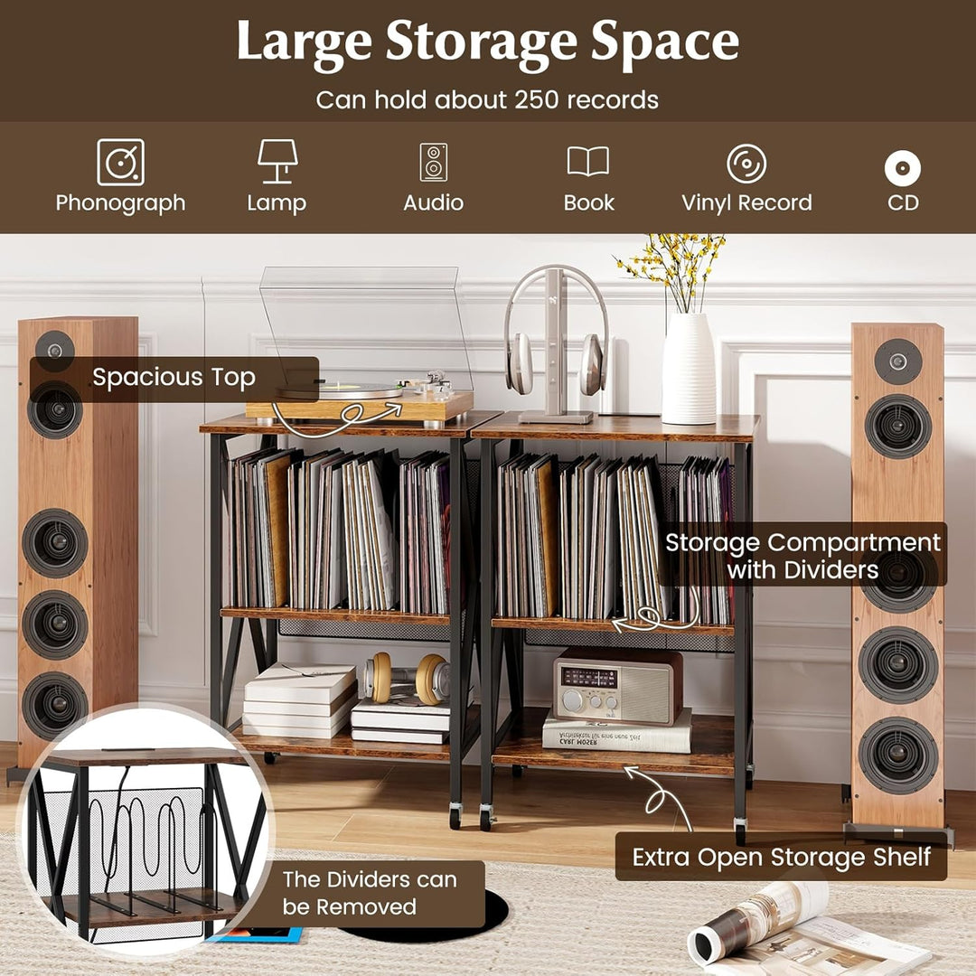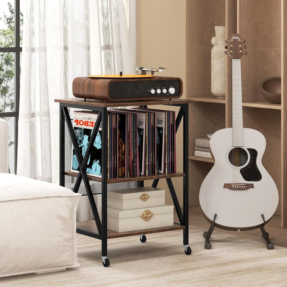 - VIELSEITIGE AUFBEWAHRUNG: Dieses Plattenspieler-Regal bietet eine 3-stufige Aufbewahrungslösung für Ihre CDs und Schallplatten, einschliesslich einer geräumigen Plattenspieler-Tischplatte und 2 offenen Trennwänden.
