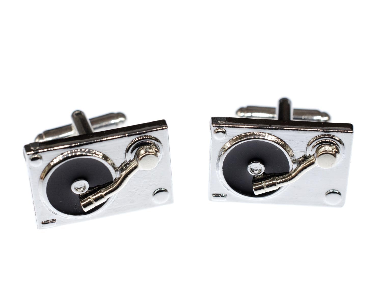 PRODUKTBESCHREIBUNGEN Coole Plattenspieler Manschettenknöpfe aus emailliertem Metall! Material Knöpfe: Metall, emailliert Grösse der Knöpfe: 25mm Lieferumfang: 1 Paar Manschettenknöpfe + Box
