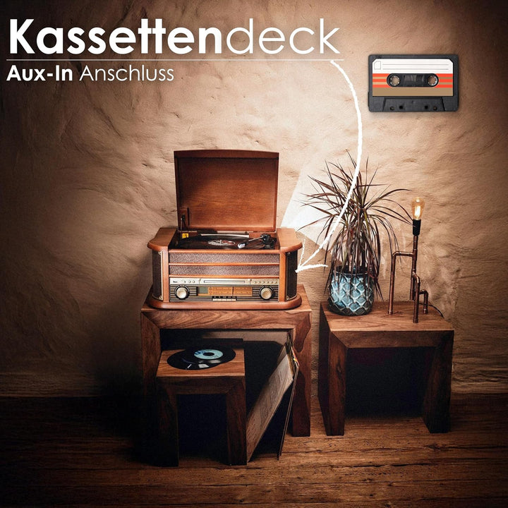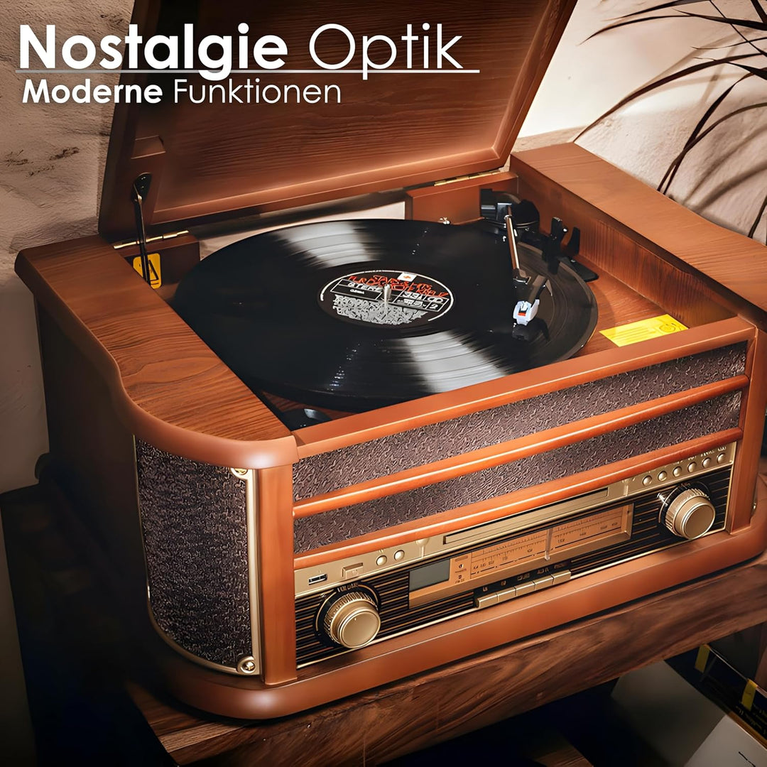 - ✔️ Mit dieser hochwertigen Nostalgie Anlage fühlen Sie sich zurückversetzt in eine andere Zeit. Eine Nostalgie Anlage aus hochwertigem Holz und einzigartigem Retro Design. Hochwertige Nostalgie Optik und moderne Technik vereinen sich in diesem
