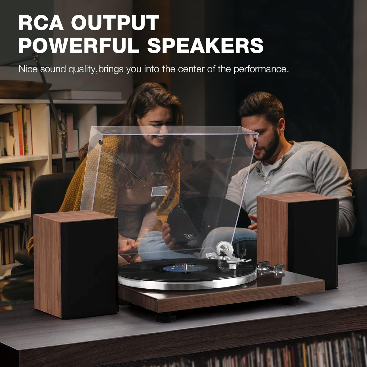- KABELLOSE KONNEKTIVITÄT & RCA-AUSGANG - Sie können mit Bluetooth-Lautsprechern oder -Kopfhörern koppeln, um ein erstaunliches, kabelloses Erlebnis zu erzielen. Noch besser, es wird kein Empfänger benötigt. Bei Bedarf verfügt dieser Plattenspieler sowohl über Phono- als auch über Line-Ausgänge. Sie können die Aktivlautsprecher mit einem RCA-Kabel verbinden, um ein besseres Klangerlebnis zu erzielen