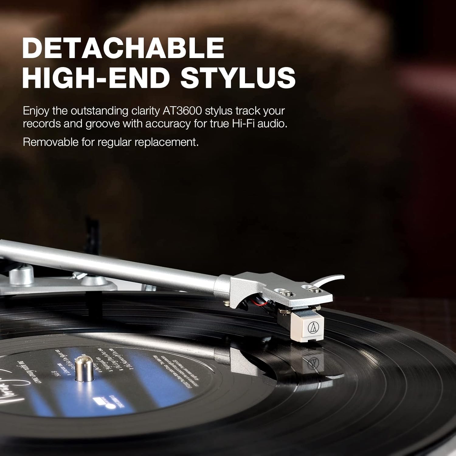 - SPEKTAKULÄRE MUSIKALISCHE GENAUIGKEIT - Die Nadelkartusche mit Diamantspitze verfolgt die Rillen Ihrer Schallplatte mit Präzision, um genau einzutauchen und in den detaillierten, hochauflösenden Klang einzutauchen. Die grössere Masse des Aluminiumtellers dämpft unerwünschte Vibrationen, was zu einem dreidimensionaleren Klang mit strafferen Bässen, einem volleren Mittenbereich und insgesamt verbesserter Klarheit führt