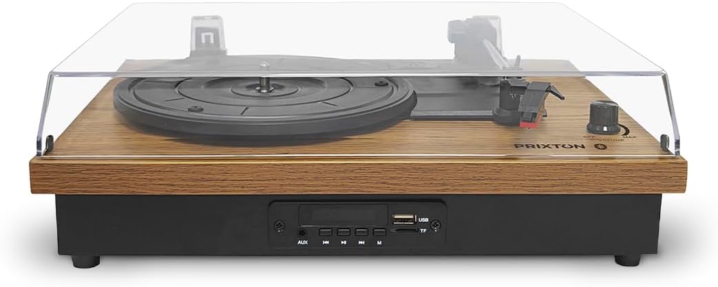 - Vinyl-Plattenspieler im Vintage-Look mit Musikwiedergabe, USB, SD-Karte, FM-Radio, Bluetooth