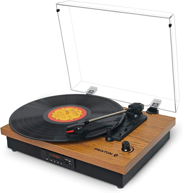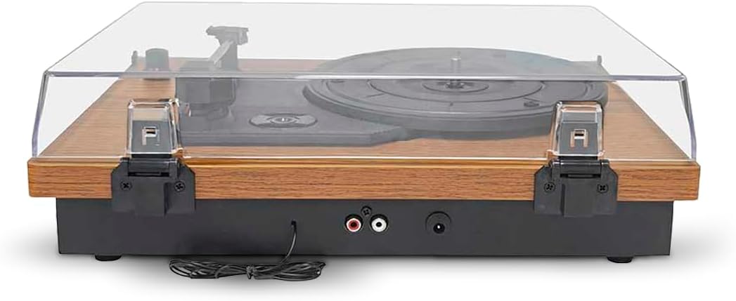 - Bluetooth Plattenspieler mit RCA-Audioausgängen. Spielt bei Geschwindigkeiten 33,3/45/78 U/min