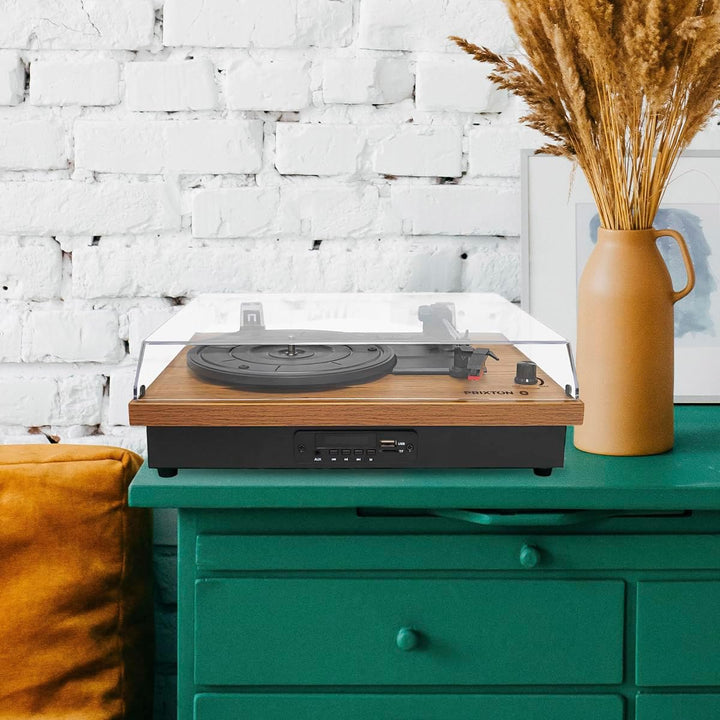 - Vintage Plattenspieler mit Bluetooth 5.0 zum Verbinden eines mobilen Geräts und zum Abspielen von Musik. Integriert 2 x 5 W Stereo-Lautsprecher.