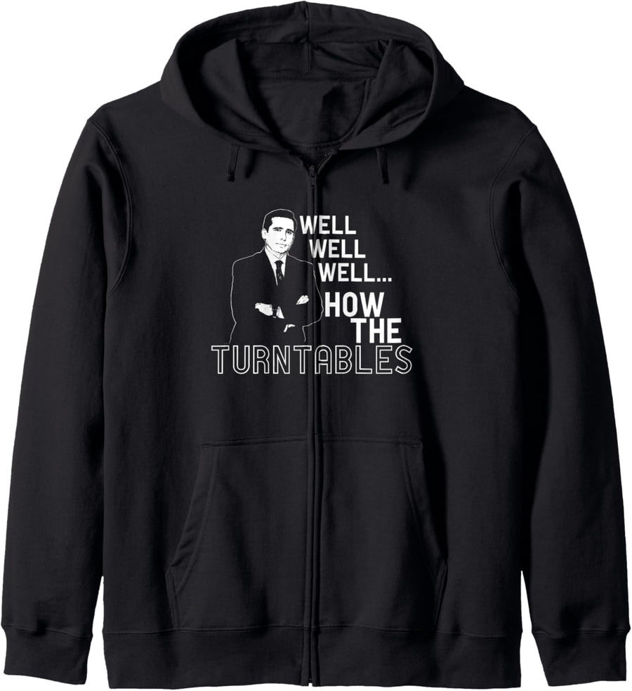 PRODUKTBESCHREIBUNGEN Nur ein weiterer Arbeitstag bei Dunder Mifflin in diesem offiziell lizenzierten The Office Merchandise von Ripple Junction. Diese Mockumentary-Sitcom von NBC zentriert sich auf die täglichen Abenteuer des Bürolebens bei einer Papierfirma in Scranton, PA. Wir alle können uns auf die Geschichten beziehen - und wir haben alle mit einem Michael Scott zusammengearbeitet. Dieses Design zeigt Michael Scott und seine berühmte "How the turntables"-Linie.