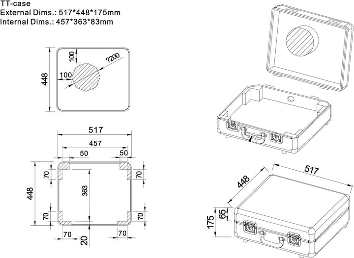 - Massives Plattenspielercase für alle gängigen Plattenspieler wie z. B.: Technics JBsystems, Sync, Denon, Numark, American Audio