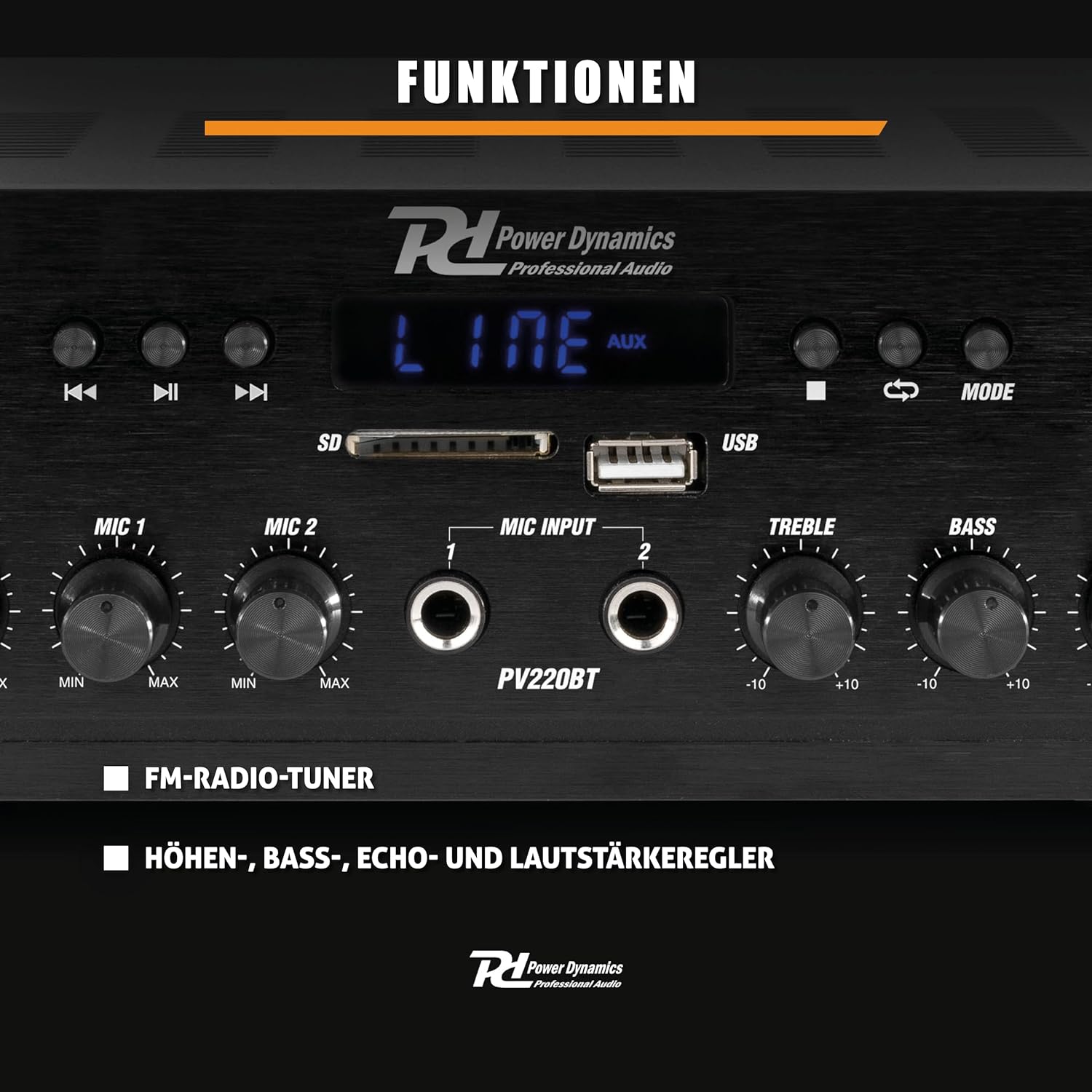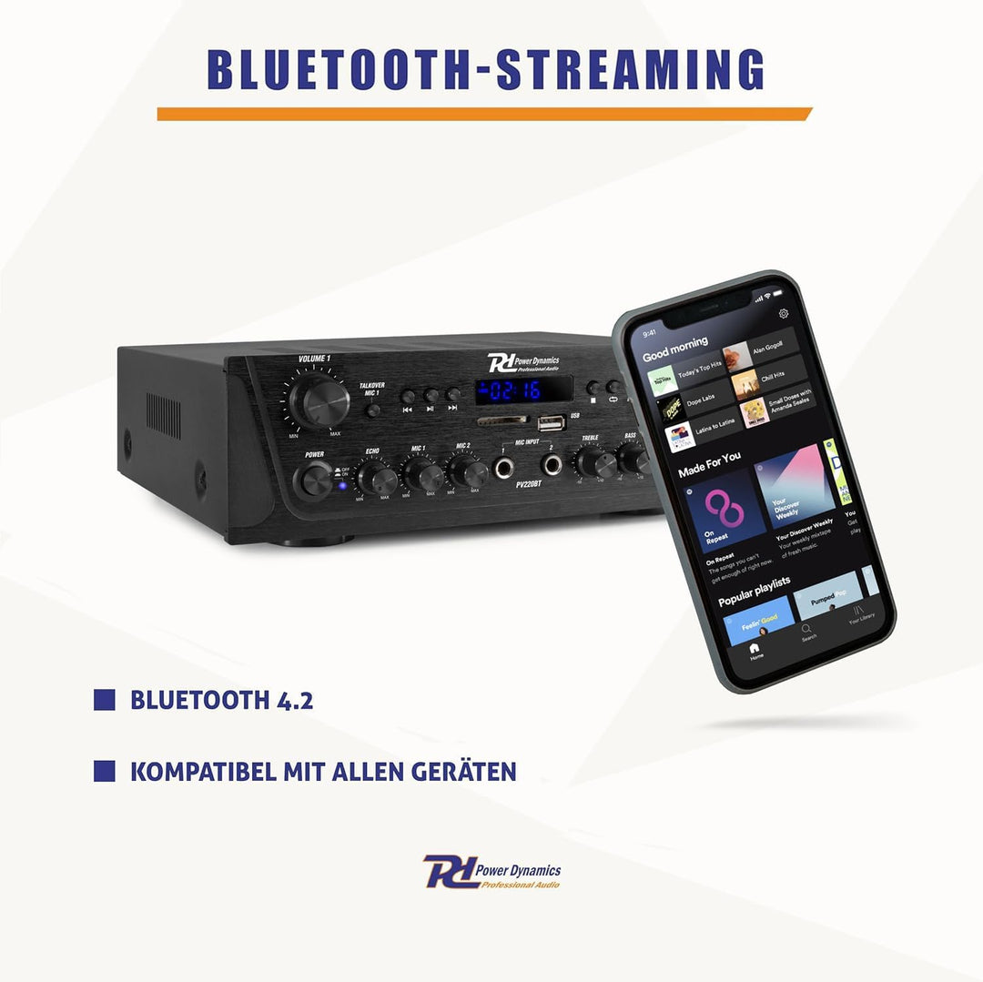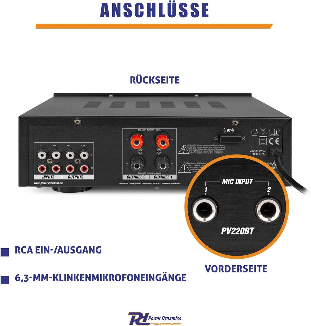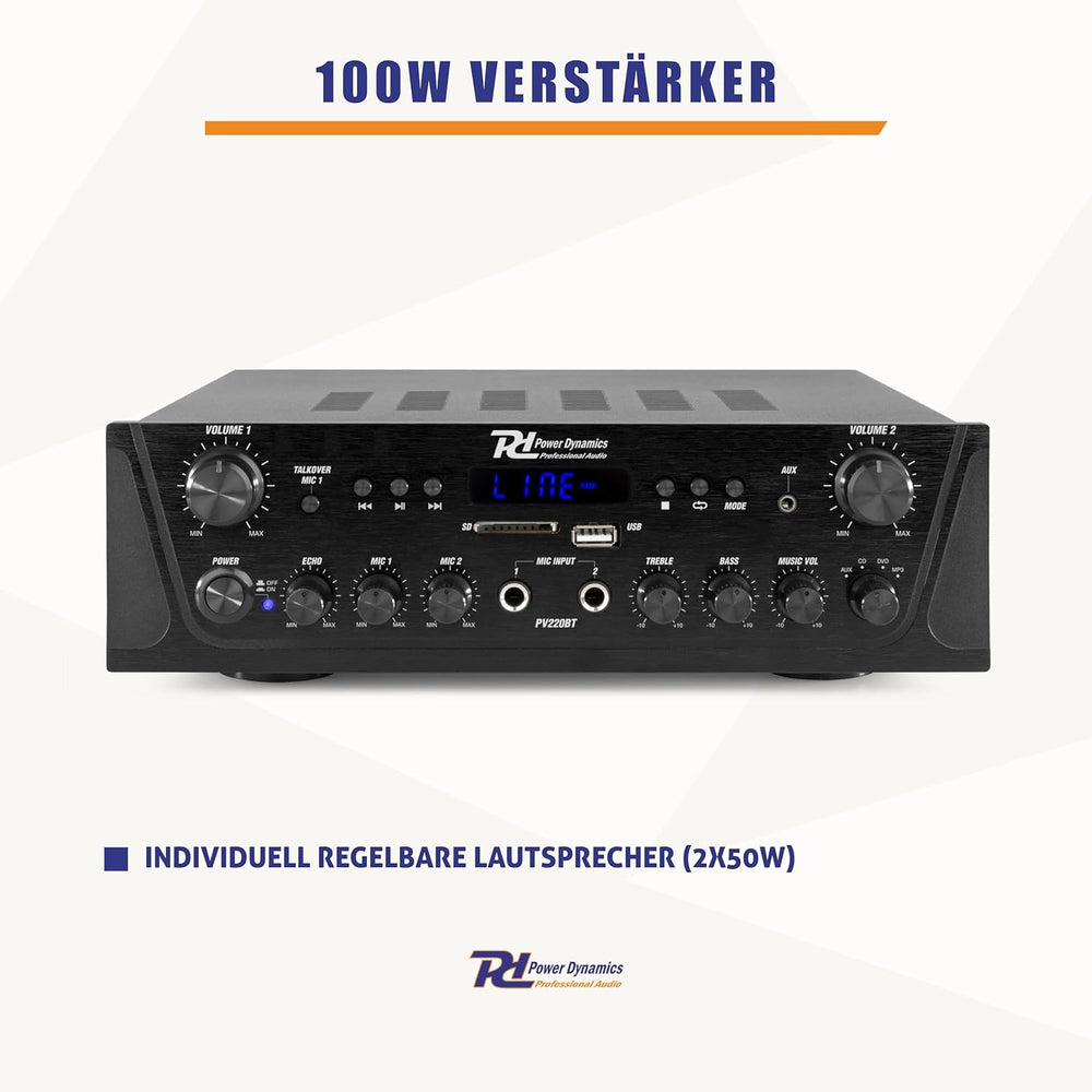 - RADIO MP3 PLAYER: Der Verstärker verfügt über ein UKW-Radio und einen USB/SD-Port für MP3-Player. Sie können daher mit dem PV220BT Verstärker Musik auf vielfältige Weise geniessen. Selbstverständlich verfügt der Verstärker auch über mehrere