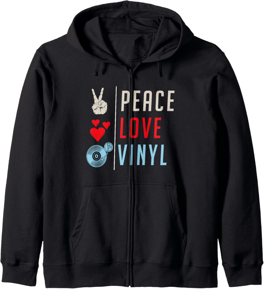 Peace Love Schallplattenspieler aus Vinyl Kapuzenjacke