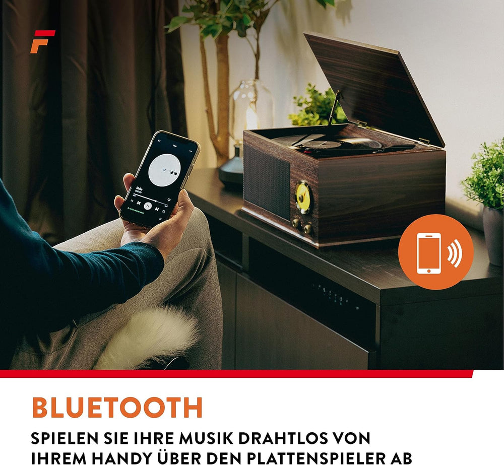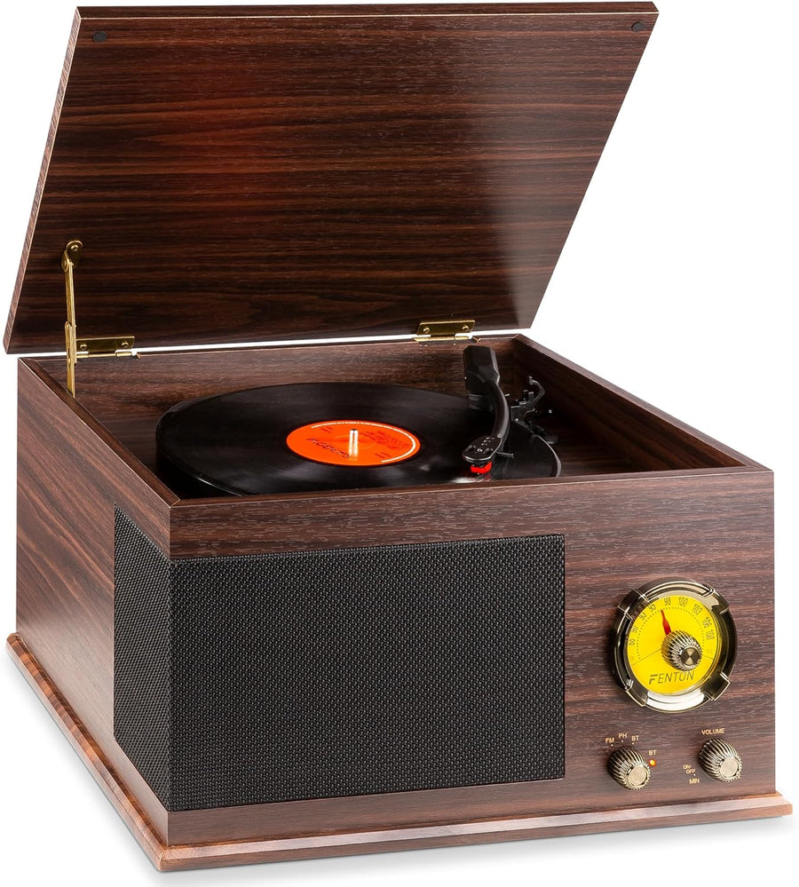 Fenton RP173 Retro Plattenspieler Bluetooth, Schallplattenspieler, Record Player mit FM Radio, einge