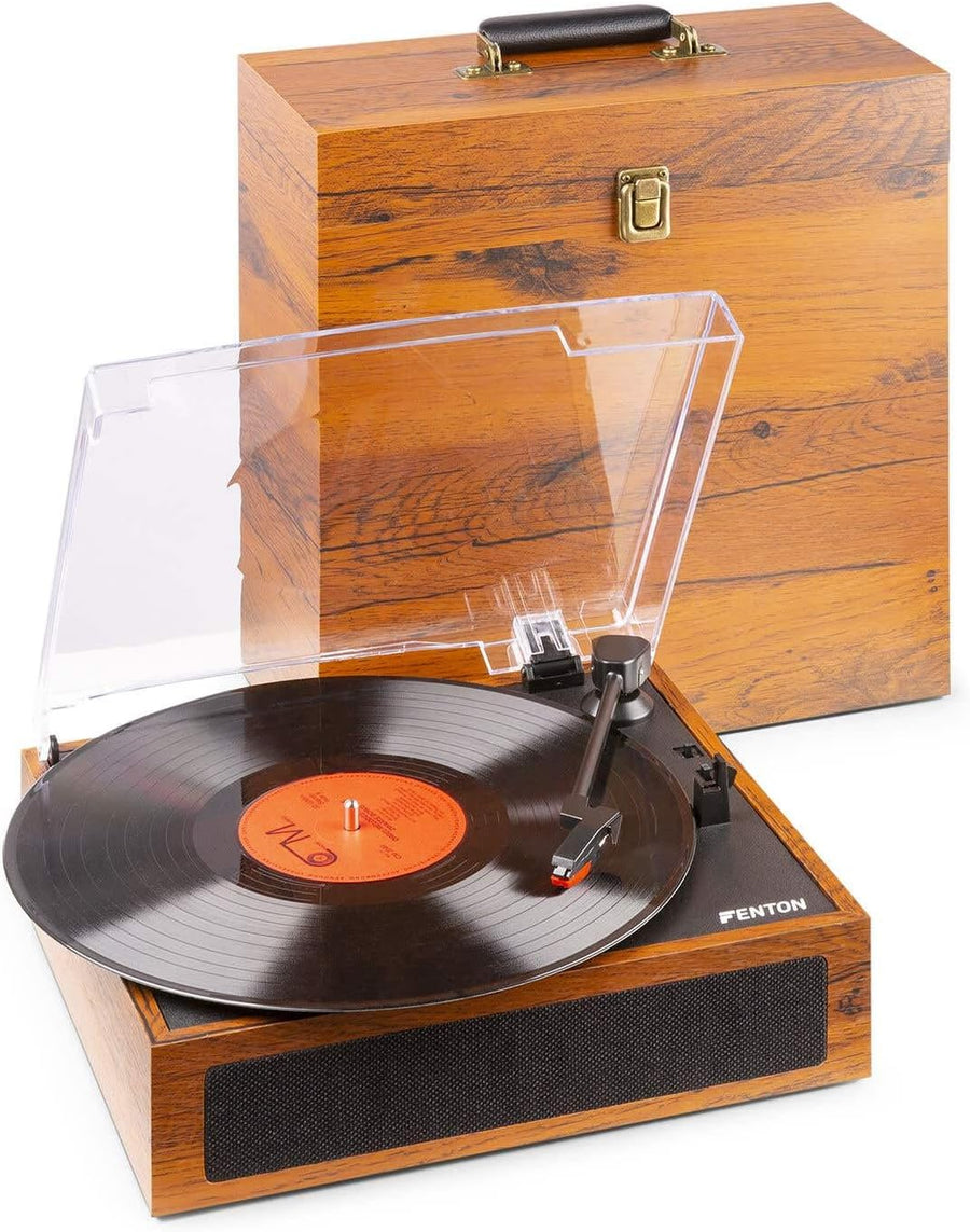 Fenton Plattenspieler Bluetooth, Vinyl Player mit Schallplattenkoffer, Autostopp, Abdeckhaube Vinyl