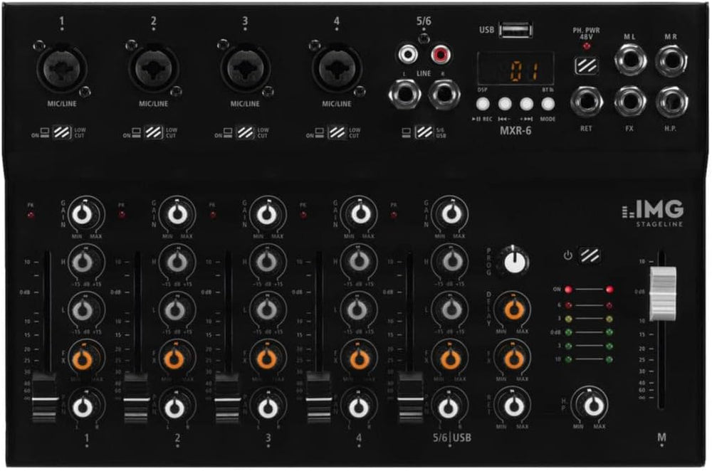 IMG STAGELINE MXR-6, 6-Kanal Audio-Mischpult mit integriertem MP3-Player, Bluetooth-Empfänger und DS