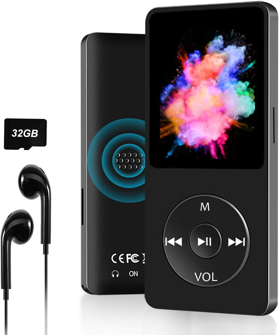 Mp3 Player Bluetooth 5.3 HiFi-Sound, Mp3 Player FM-Radio, Mini Mp3-Player 32G für Kinder und Erwachs