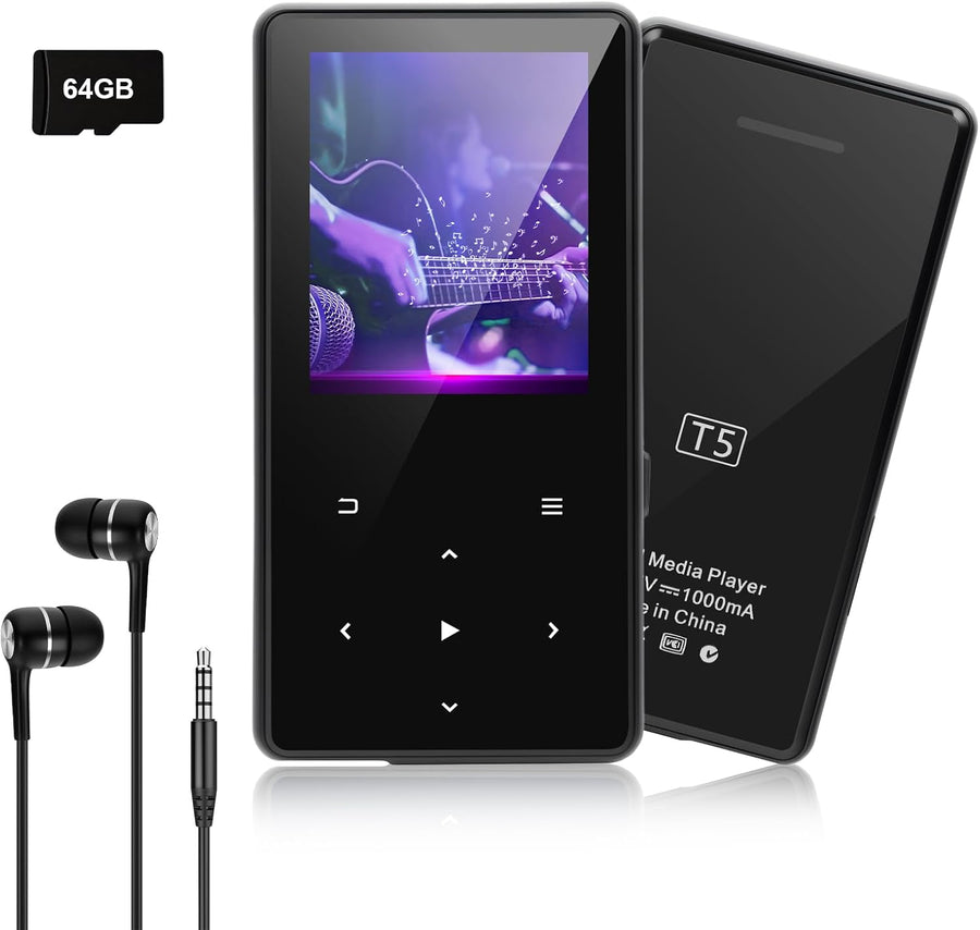 64GB MP3-Player mit Bluetooth 5.3 - Musik-Player mit Lautsprecher, HiFi-Sound, E-Book-Funktion, FM-R
