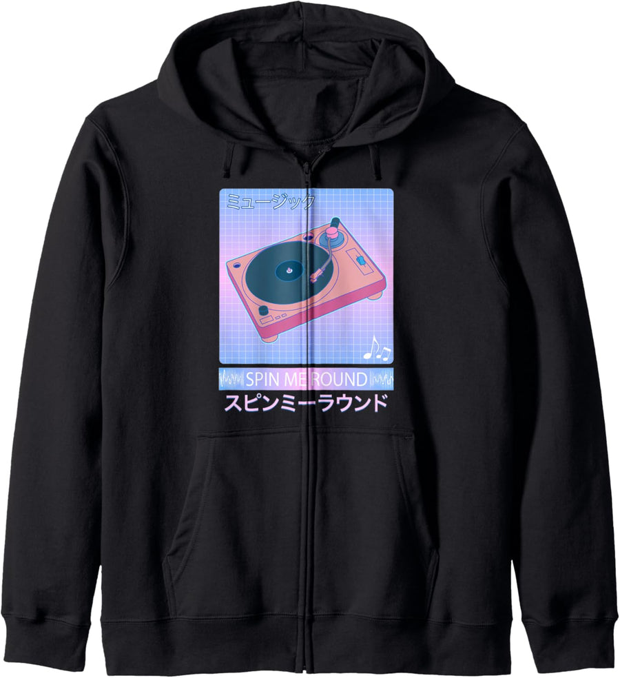 Vaporwave Plattenspieler Retro 80er Jahre Japanische Otaku Kunst Kapuzenjacke