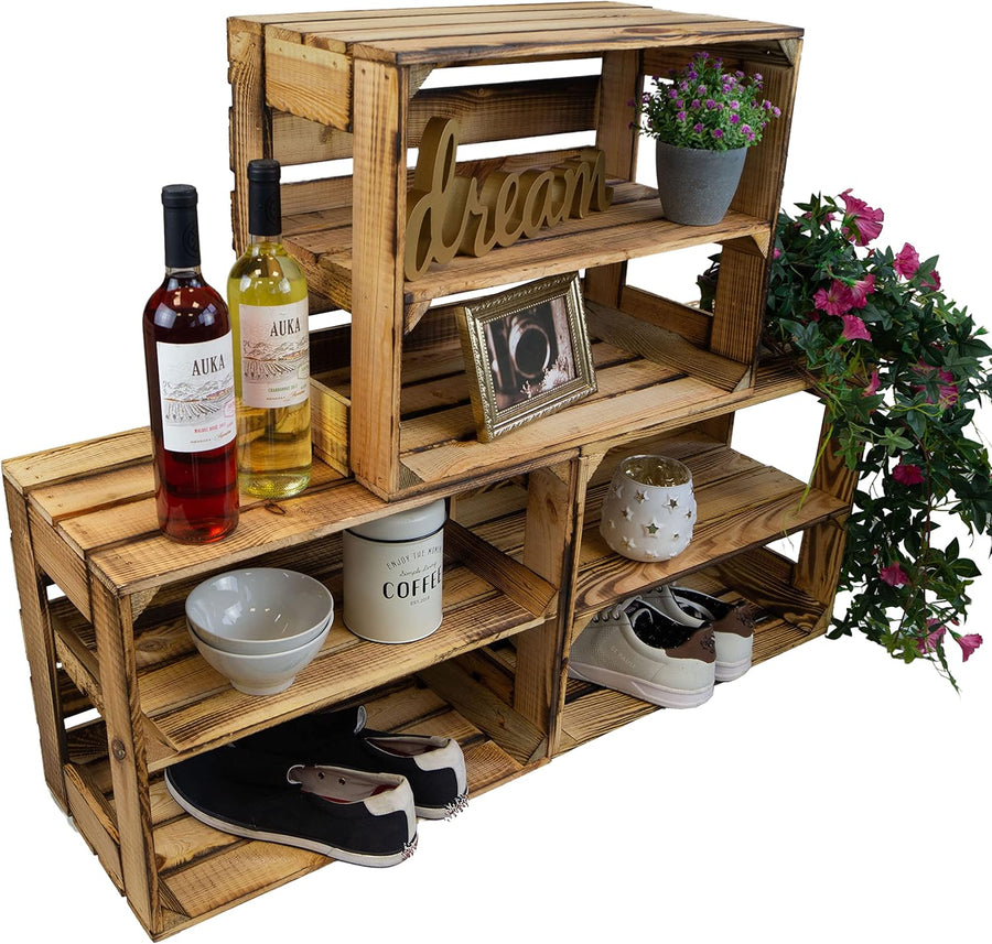 Kistenkolli Altes Land 3er set Regalkiste Holzkiste Gerda flambiert mit Zwischenbrett/Mittelbrett Lä