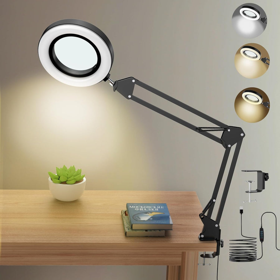 weswose 10X Lupe mit Licht und Ständer, Hochauflösende, Einstellbare Lupenlampe, 72 LED Anstecklupe,
