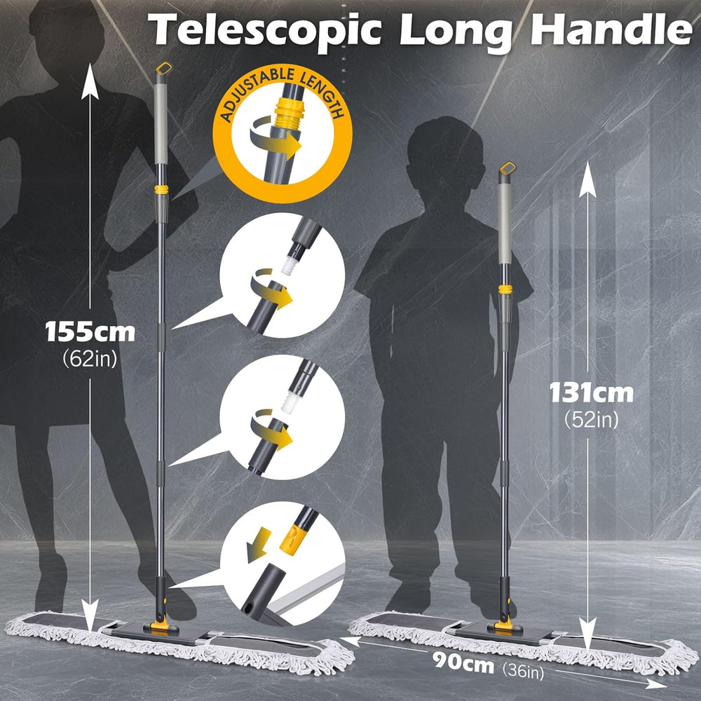 MASTERTOP Bodenwischer Breit, 90cm Gross Wischmop mit Aluminium Stiel und 3 Moppkopf, Industrieller