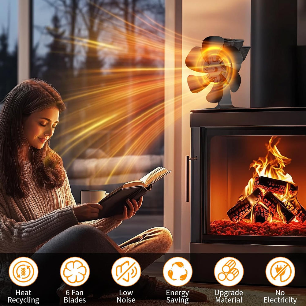 Wopigh Kaminventilator 6 Flügel Ofenventilator Ohne Strom, Holzofenventilator Leiser Betrieb, Angetr