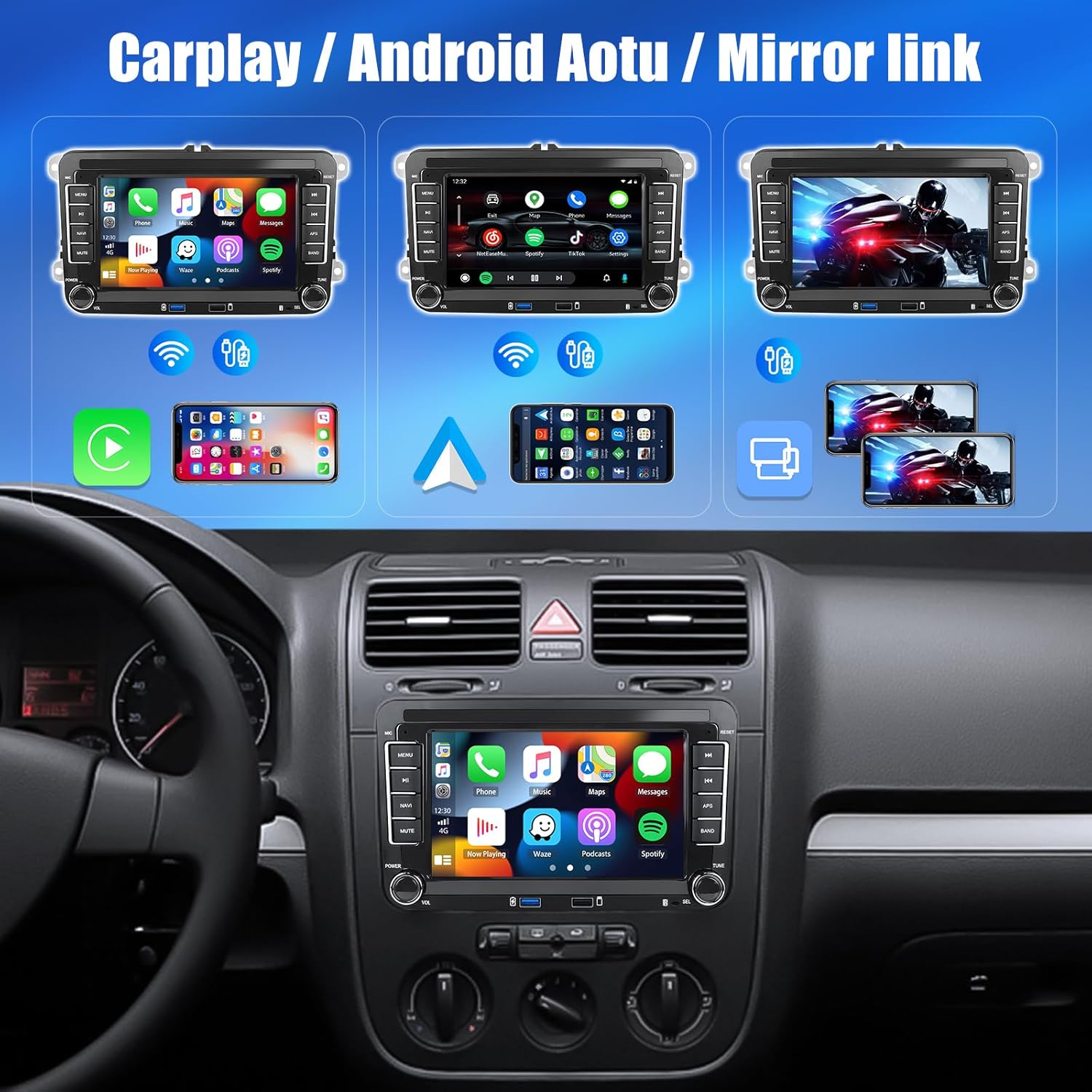 - Kompatibel mit Carplay & Android Auto: Built-in carplay & android auto, sicherer Weg, um Ihr Smartphone zu verwenden, während Sie fahren. Sie können Wegbeschreibungen erhalten, Anrufe tätigen, Texte senden, Nachrichten empfangen, Ihre Lieblingsmusik