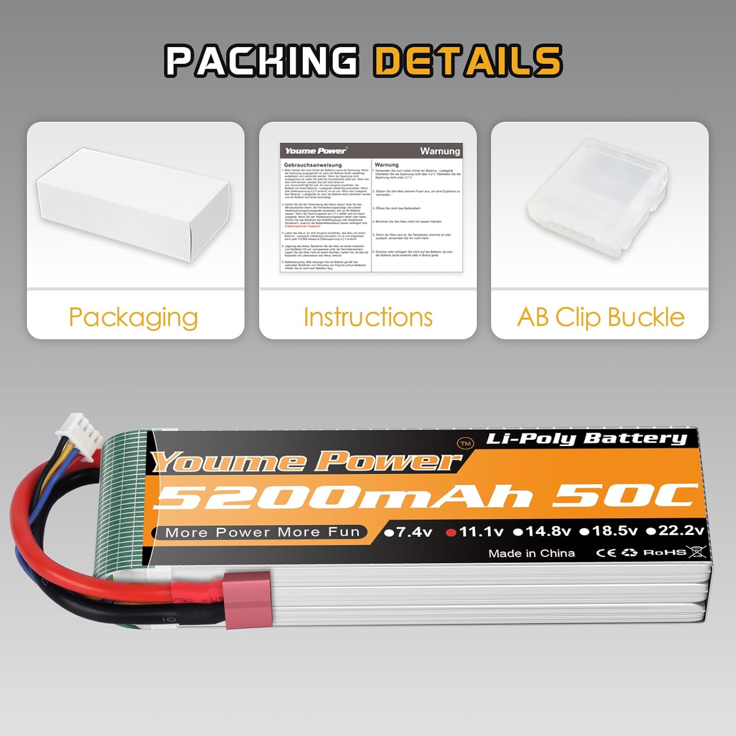 - 【WAS SIE ERHALTEN】Youme 11.1v 5200mah 50c deans T lipo Akku verkauft von SZHENIU. Bitte beachten Sie den Verkäufernamen, wenn Sie Zahlung. Shorty 3s Lipo-Akku 11,1 V, 5200 mAh, 50 C T-Stecker, Lithium-Polymer-Akku, enorme Kapazität, hohe