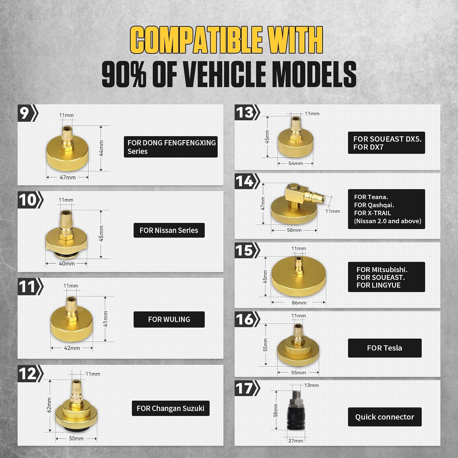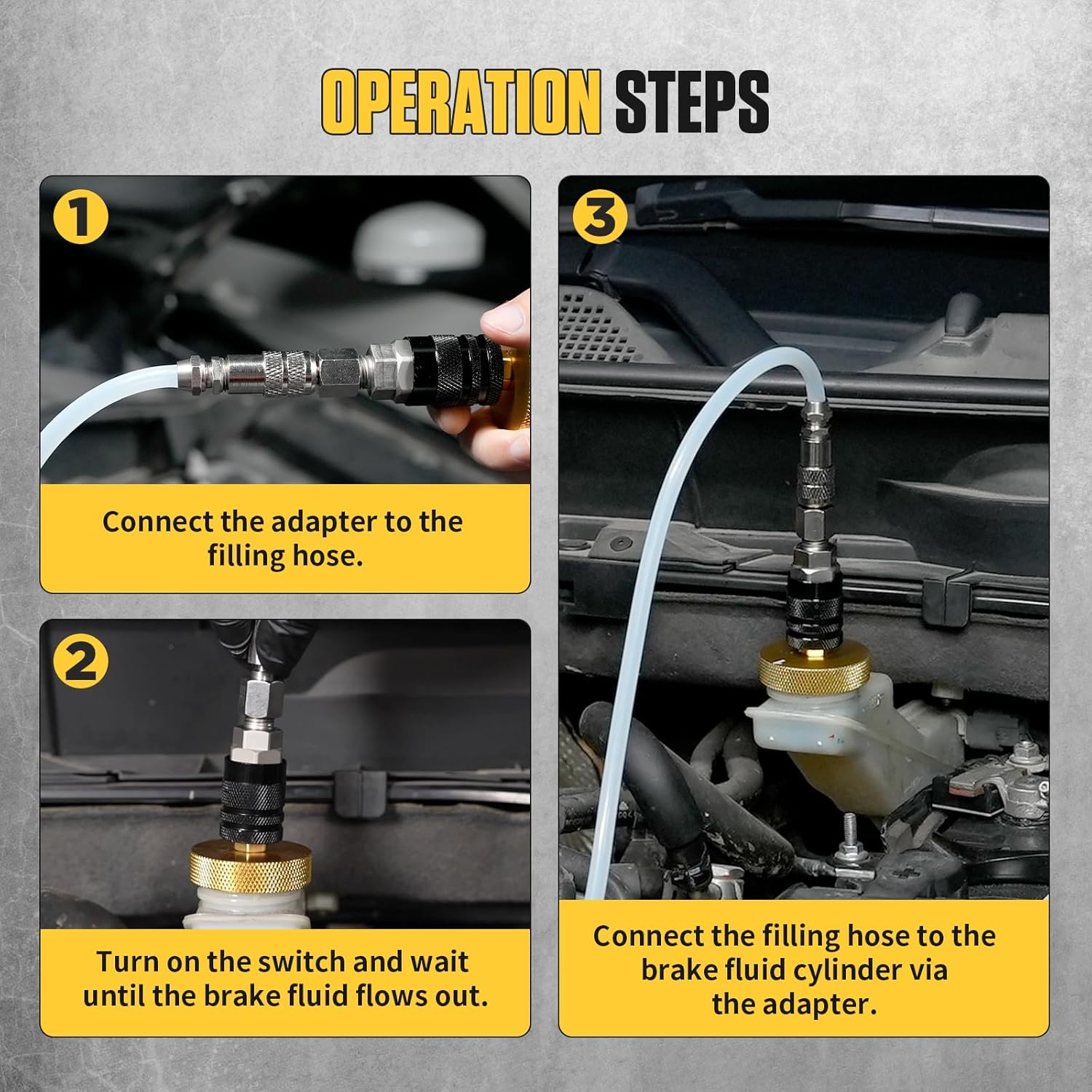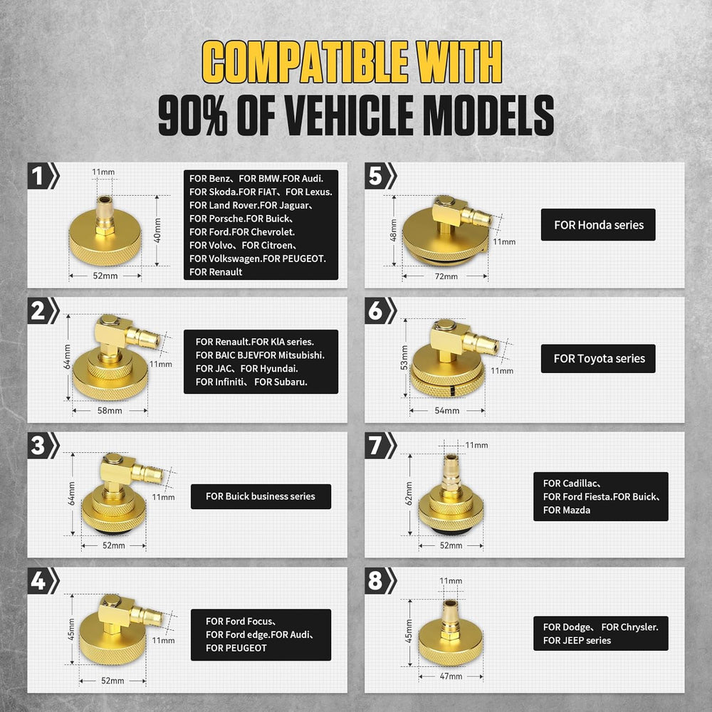 - [Verbesserter Kuppler] Mit 4 Schnellanschlussadaptern befestigt, kompatibel mit europäischen, US-amerikanischen und metrischen Hauptzylinderschnittstellen. Deckt über 90 % aller Fahrzeuge weltweit ab, geeignet für Mercedes-Benz, BMW, Audi, Mitsubishi,