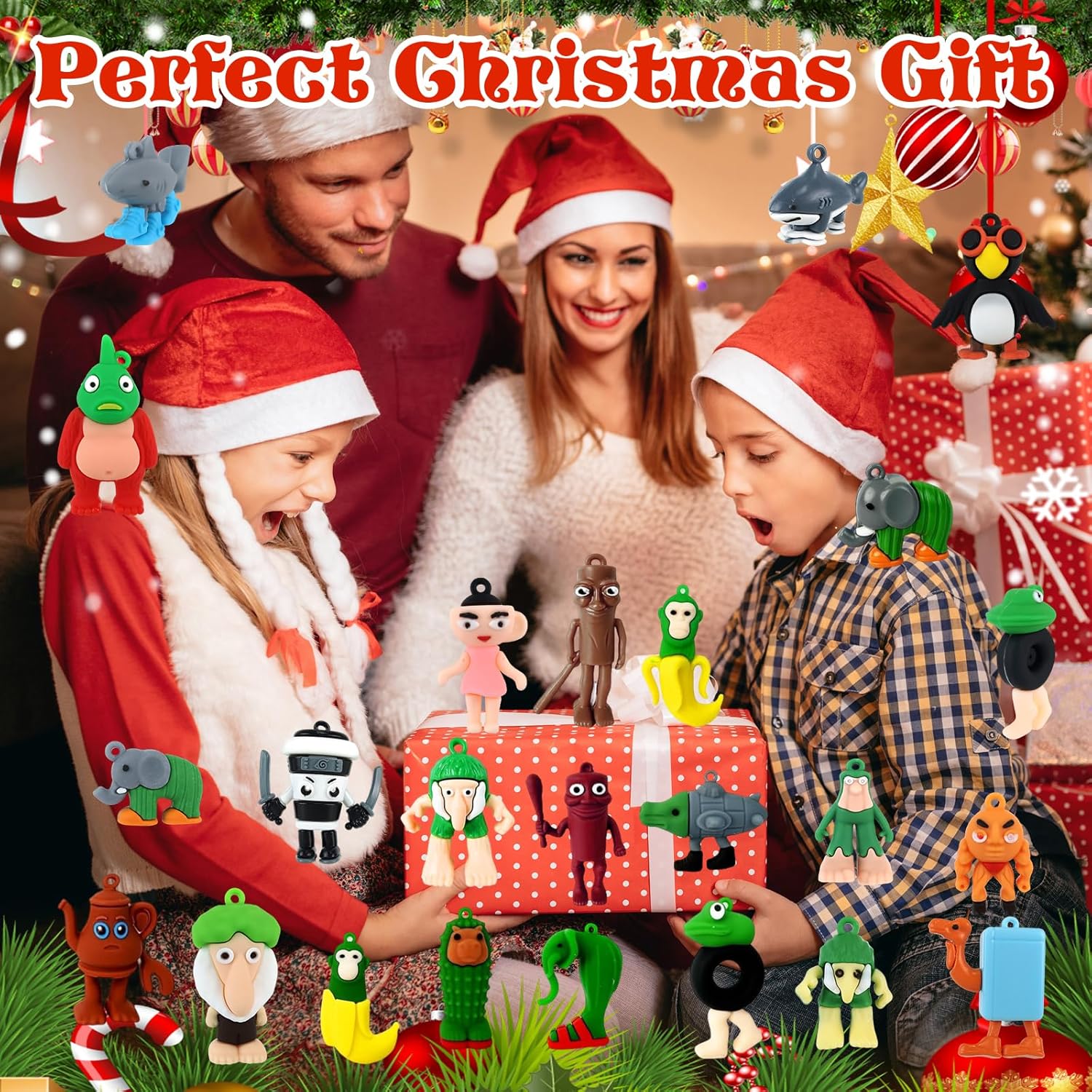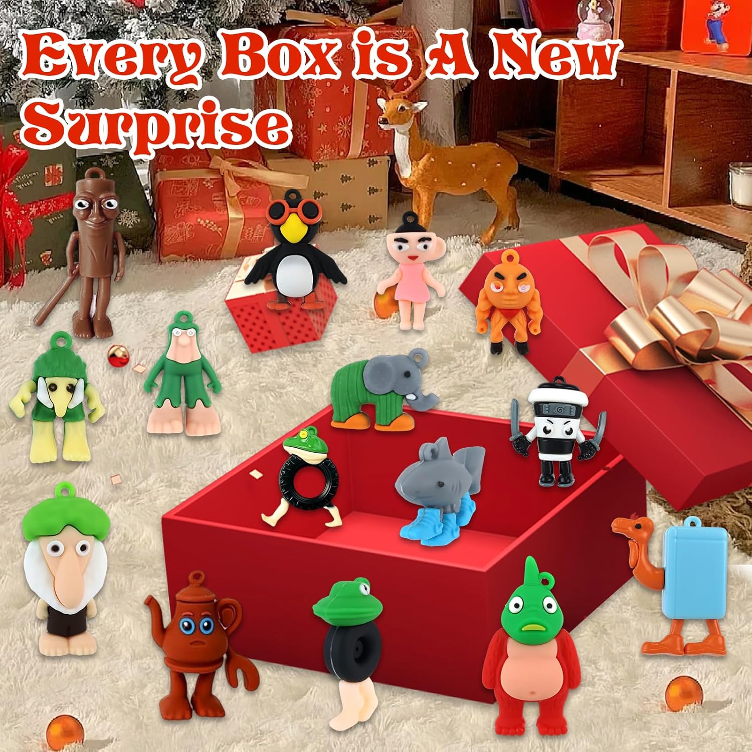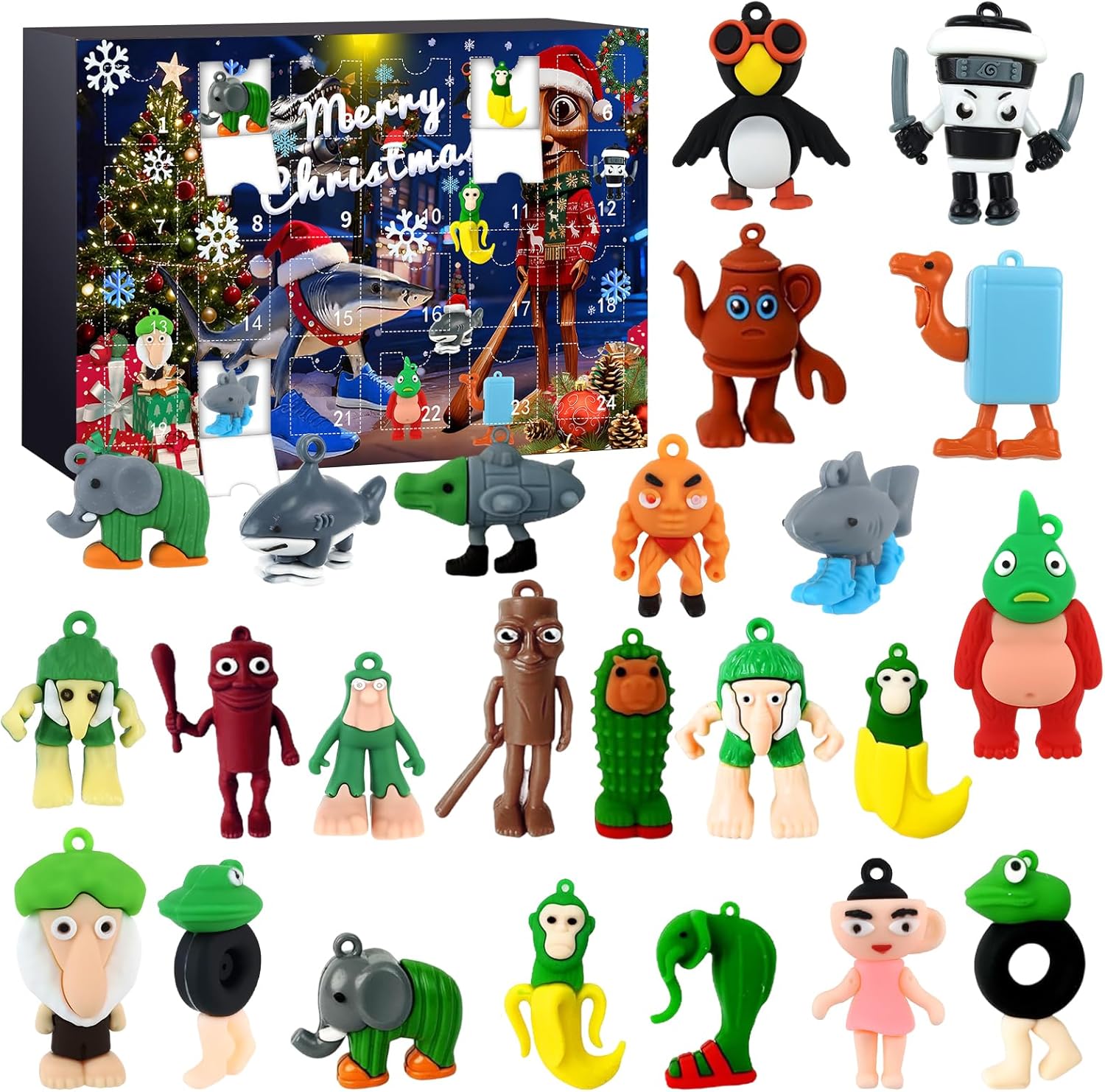 - 【2025 Adventskalender-Spielzeug】24 Tage sind digital aufgezeichnet, Kinder öffnen 24 Tage lang jeden Tag eine Tür, um jeden Tag eine andere italienische Brainrot-Actionfigur herauszunehmen. Wird es eine bananenförmige oder eine elefantenförmige