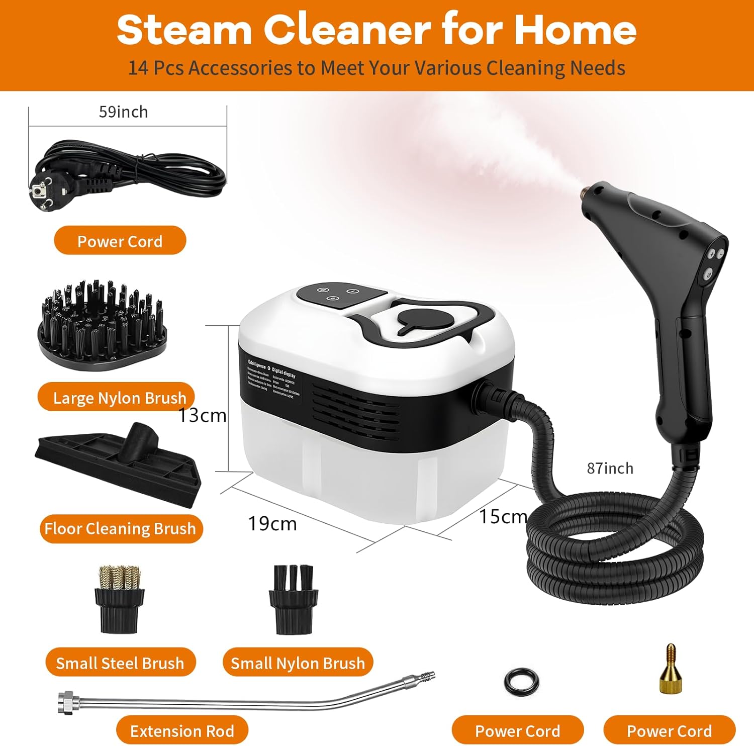 - Leistungsstarke Reinigung mit 2500W & 4,5 Bar Druck: Unser Hochdruck-Dampfreiniger packt selbst hartnäckigen Schmutz an! Mit 2500 Watt Leistung und 4,5 Bar Druck dringt der heisse Dampf tief in Fugen, Textilien oder Oberflächen ein – für hygienische