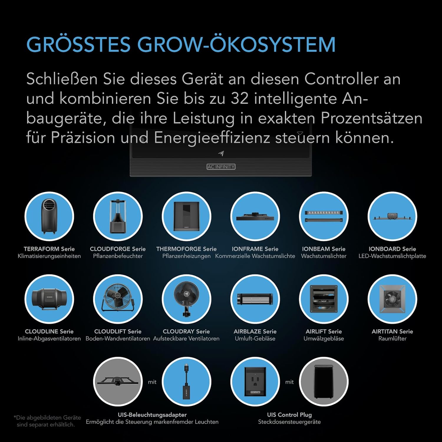 - Enthält einen Lüftergeschwindigkeitsregler mit präziser 10-stufiger Steuerung für einen exakten Luftstrom und zur Verhinderung von CO2-Anreicherung.