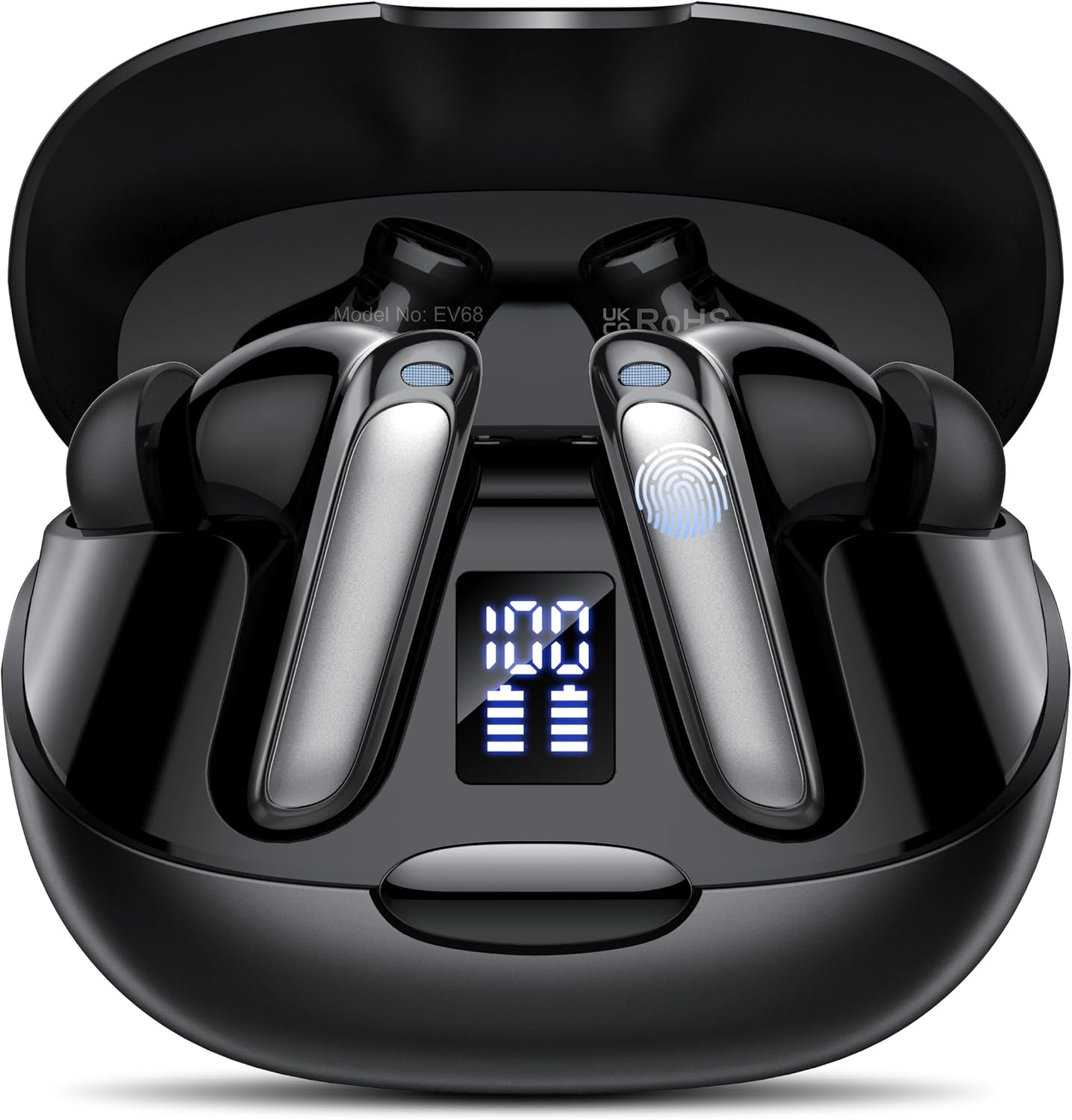 - 48 Stunden Spielzeit und LED-Display: Diese ai übersetzer kopfhörer bieten bis zu 8 Stunden Nutzung pro Ladung und bis zu 48 Stunden mit dem Ladecase – ideal für langanhaltende Übersetzungen. Das LED-Display zeigt den verbleibenden Akkustand,