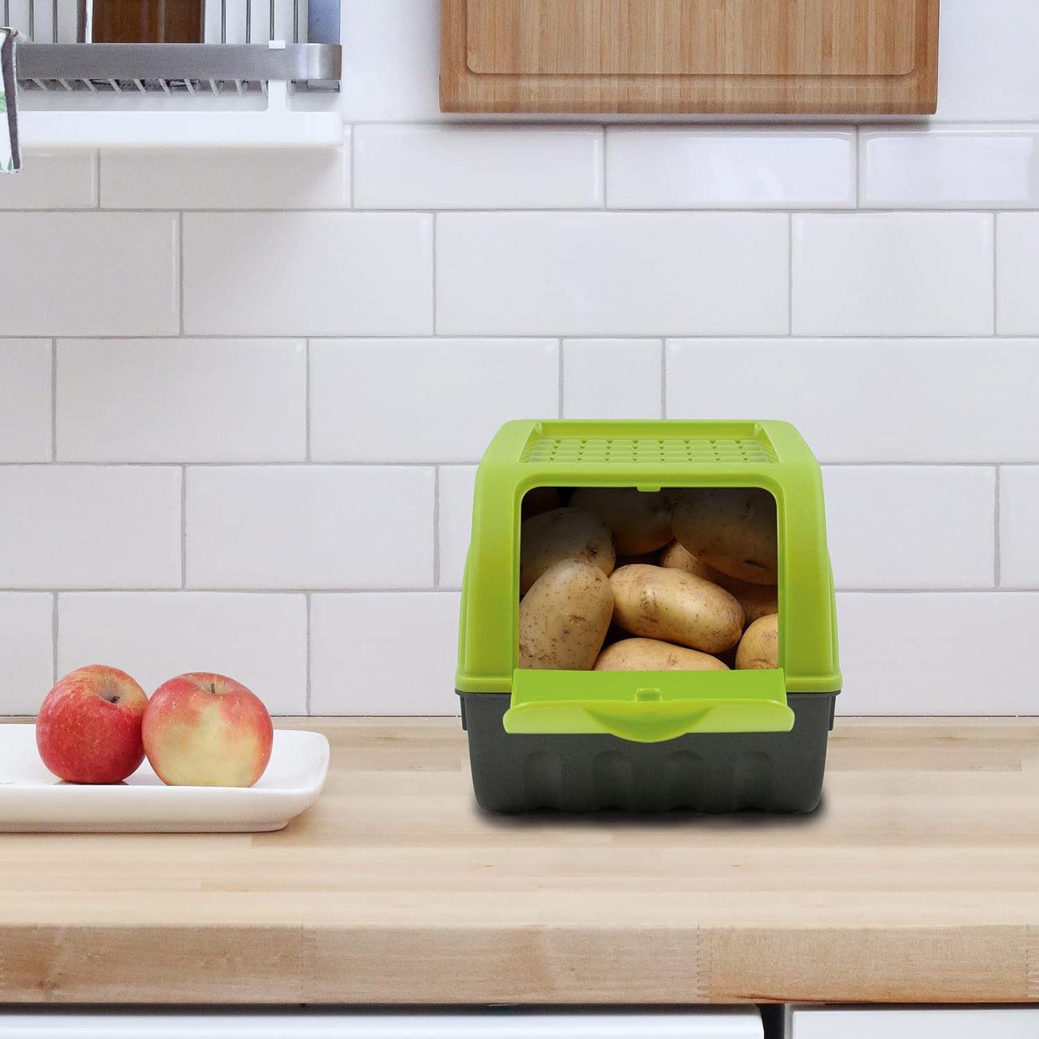- 2er Set Vorratsdosen aus Kunststoff für Kartoffeln, Gemüse, Obst, Zwiebeln. Stapelbar mit Deckel.
