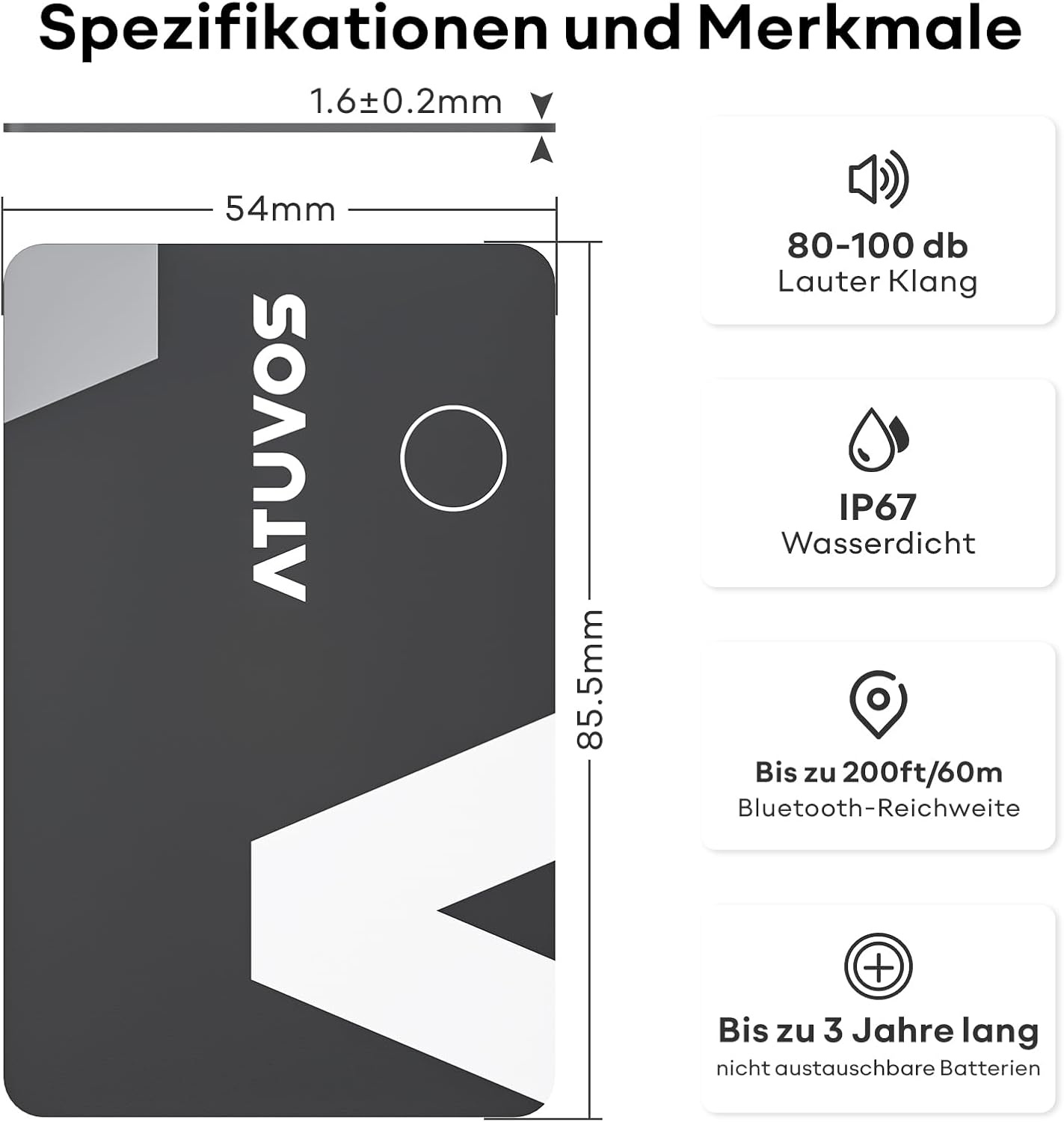 - 【Mehrfachverwendung & Kundenservice】: ATUVOS Brieftaschen-Tracker für hilft Ihnen, Ihr Gepäck, Koffer, Taschen, Auto und mehr zu verfolgen. Grosse Geschenke für Ihre Familie während Geburtstage, Weihnachten und jeden anderen Urlaub. Wir haben