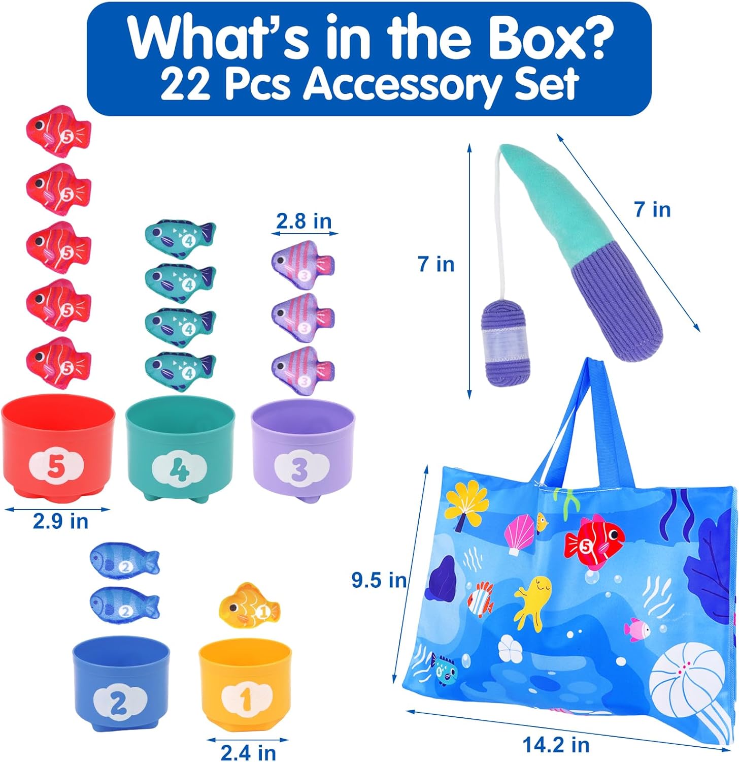 - Spielerisch Lernen: Fangen Sie Fische in verschiedenen Farben, zählen Sie Ihre Fänge und sortieren Sie sie nach Farbe oder Zahl. Frühes Lernspielzeug hilft Kindern, erste mathematische Fähigkeiten, Farberkennung, Zuordnung, Zählen und Sequenzen zu