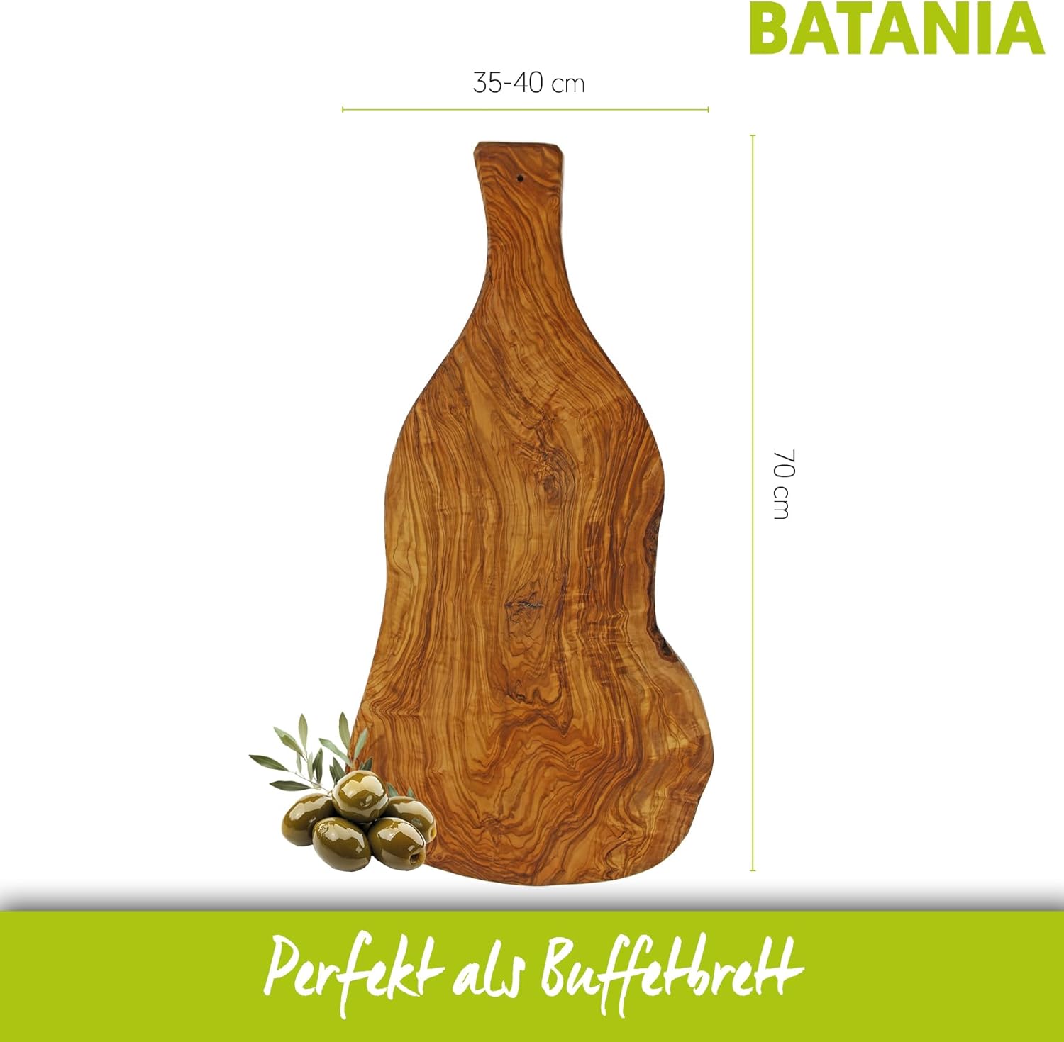 - Beindruckende Masserung: Das Batania Olivenholzbrett ist eine hochwertige Brotzeitplatte, die durch ihre natürliche Maserung und warme Farbgebung besticht und jedes Buffet zum absoluten Hingucker macht