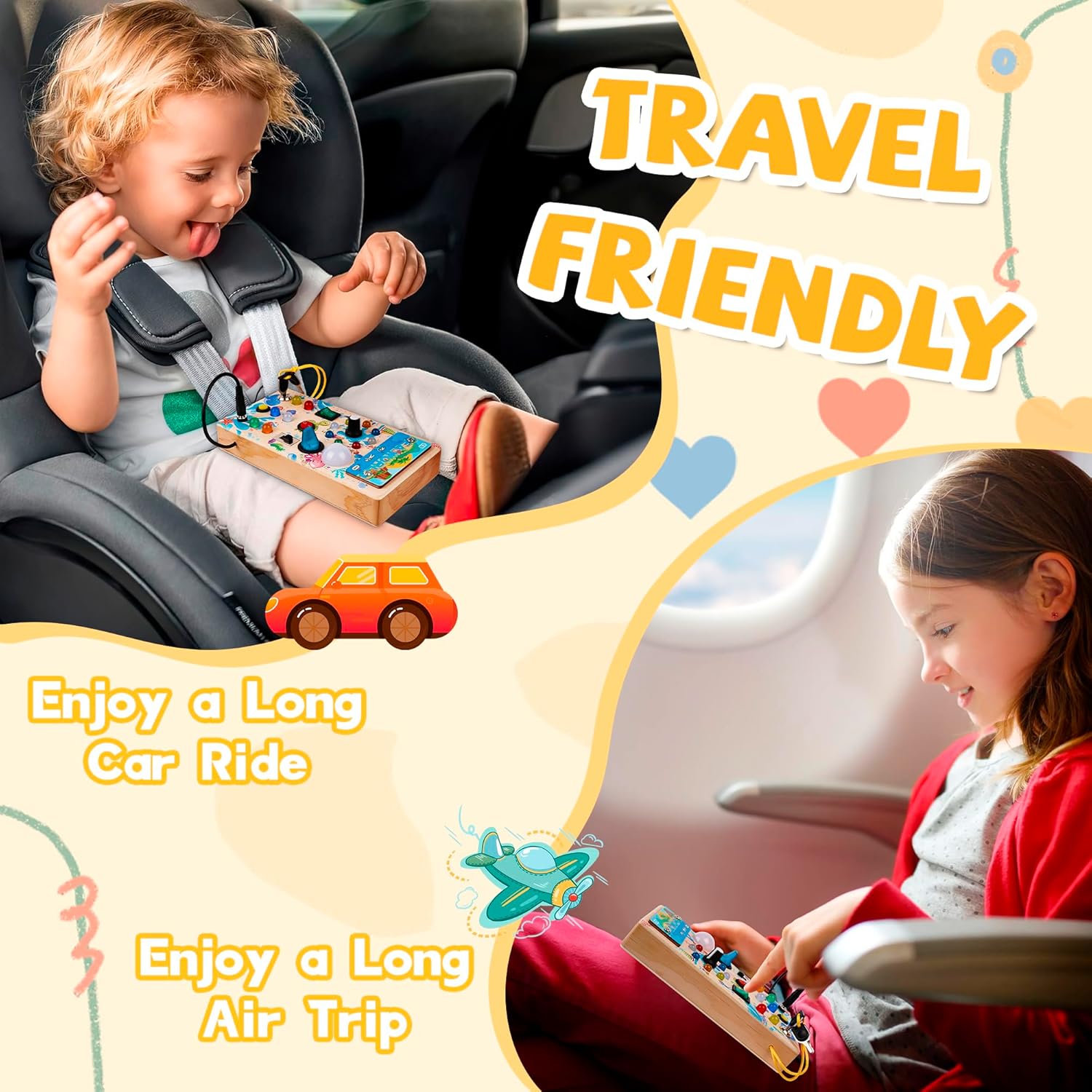 - 【Tragbare Reisespielzeug】 Dieses Spielbrett enthält eine Aufbewahrungstasche, die einfach zu tragen und perfekt für Reisen perfekt ist. Dieses sensorische Tafel wird Ihr Kind während einer langen Reise im Auto oder Flugzeug beschäftigen. Und es