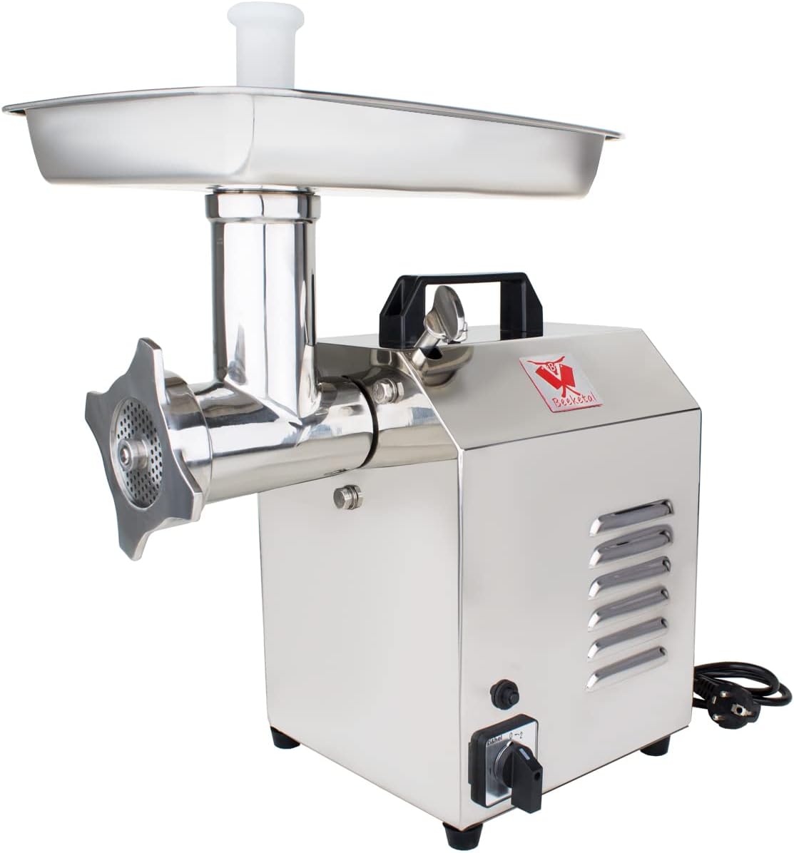 - Technische Details - Anschluss: 230V-50Hz | Leistung: 750 Watt | Kapazität: 120 kg pro Stunde | Masse: 240 x 210 x 315 mm| Gewicht Netto: ca. 21,4 kg | Lieferumfang: 3 x Fleischwolfscheiben (Grösse 10/12 - ca. 70 mm Ø) mit 3, 6, 8 mm breiten Löchern,