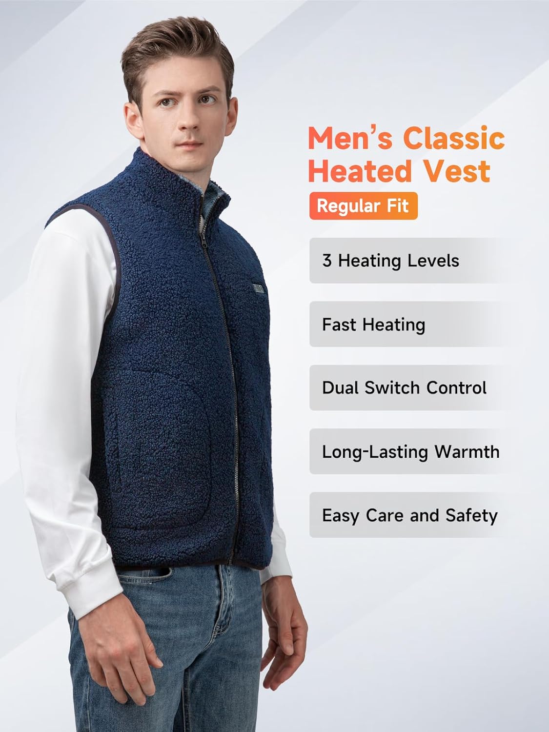 - Weiche und stilvolle Beheizbare Weste: Geniessen Sie den Komfort unserer Heizweste aus weichem blauem Fleece und kombinieren Sie Stil mit der Wärme, nach der Sie sich sehnen.