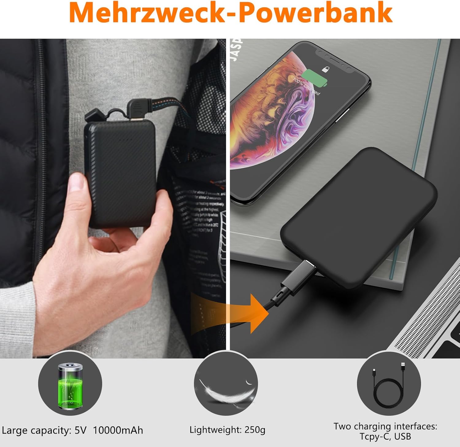 - 【USB Laden 】Heizweste Eingebautes Heizmodul, intelligente Heizung, 5V/10.000mAh Akku bietet bis zu 10 Stunden Wärme, der Akku unterstützt 2 Lademethoden : Typ C und Micro-USB. Batterieleistung Kann für mehrere Zwecke verwendet werden. [Hinweis]: