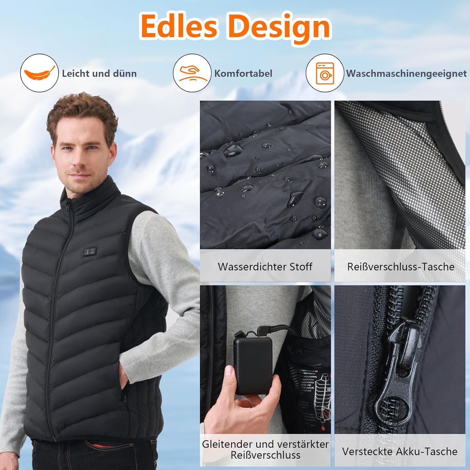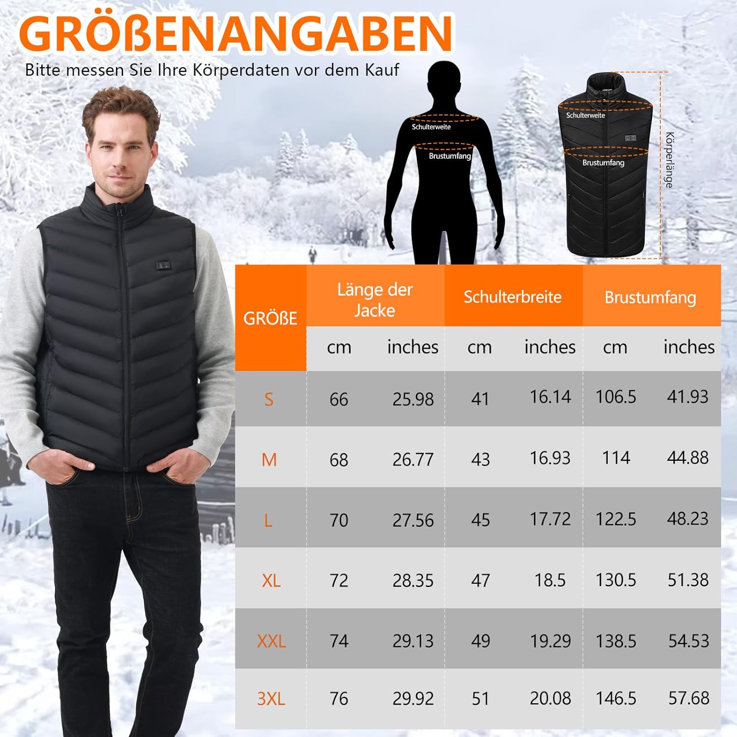 - 【Anwendbar für Verschiedene Szenen】 Die elektrische Beheizte Weste ist leicht und warm. Es eignet sich sehr gut für Outdoor-Aktivitäten im Herbst und Winter, wie Skifahren, Camping, Motorschlitten, Wandern, Angeln, Jagen, Wandern oder Büroarbeit.
