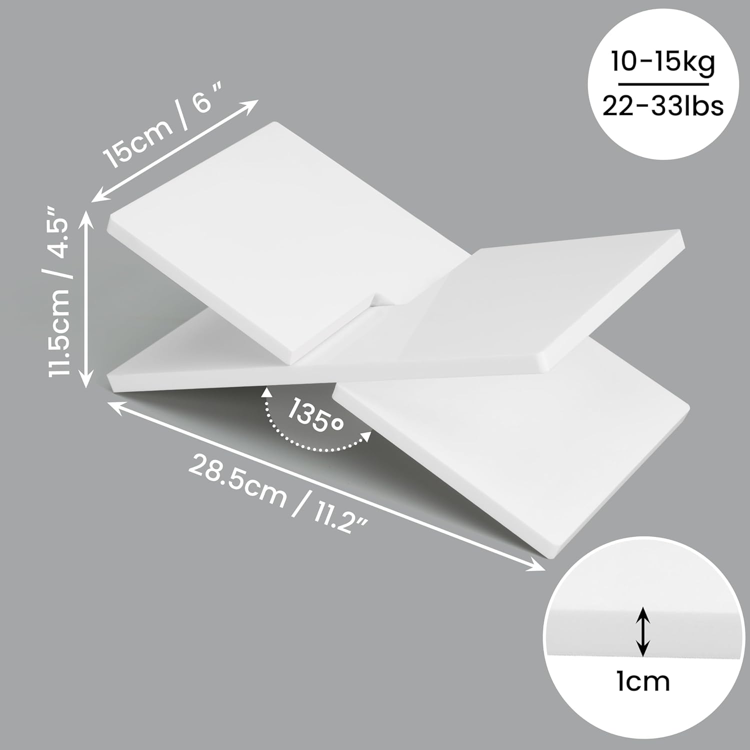 - Stilvoller Buchständer: Präsentieren, organisieren und lesen Sie Ihre Bücher stilvoll mit diesem eleganten, weissen Buchständer. Unser Halter misst 28,5 x 15 x 11,5 cm (B x T x H). Die X-förmige Struktur unterstützt schwere Bücher und schützt