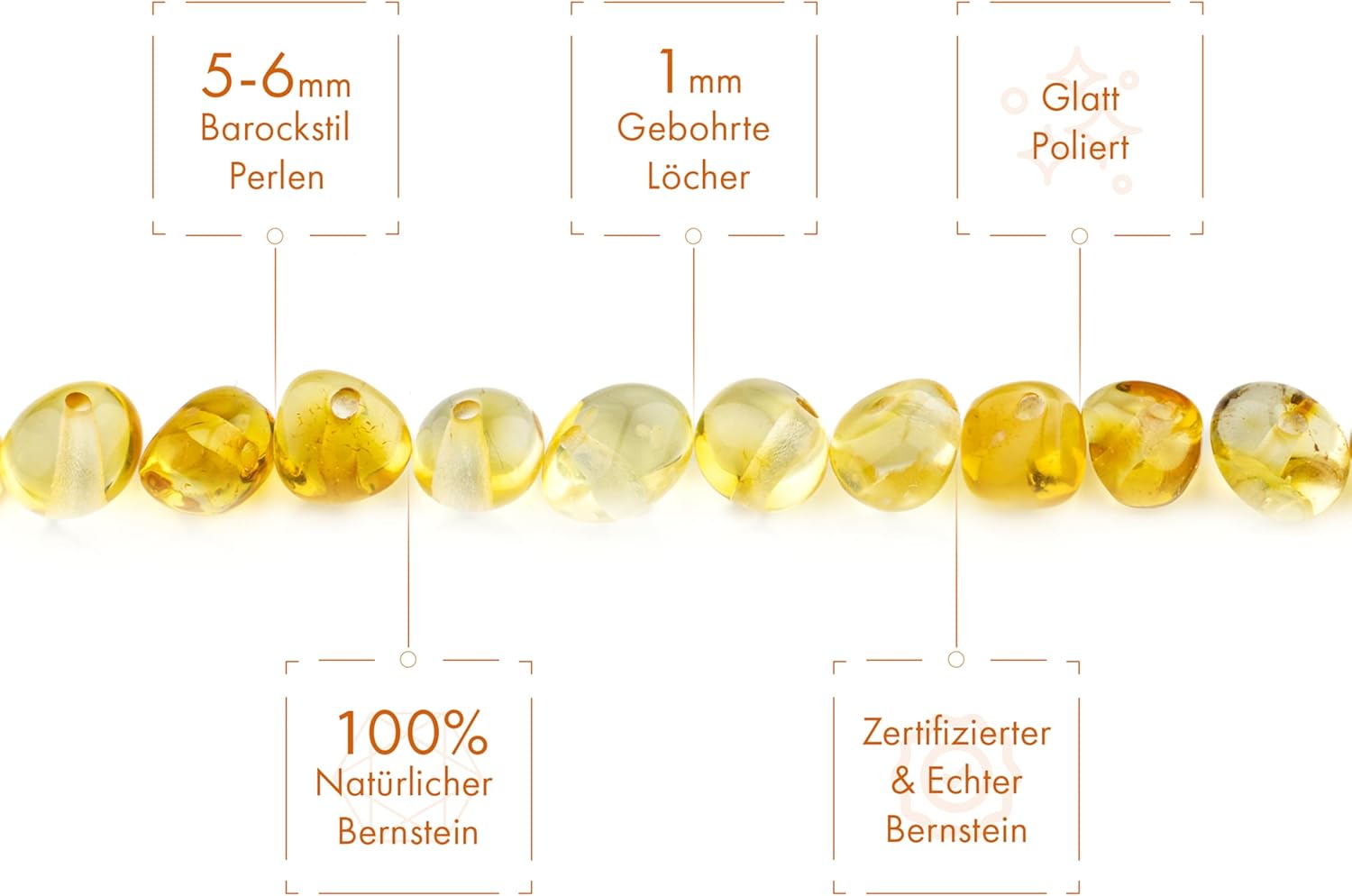 - ✔️ WUNDERBARES ANGEBOT. Poliert und Roh Bernstein Perlen im Barock-Stil von natürlichen baltischen Bernstein. Bernstein Perlen können in verschiedenen Mengen gekauft werden. 3g von 5-6mm perlen enthält ca. 30 Stucke / 10g - ca. 120 Stucke / 20g -
