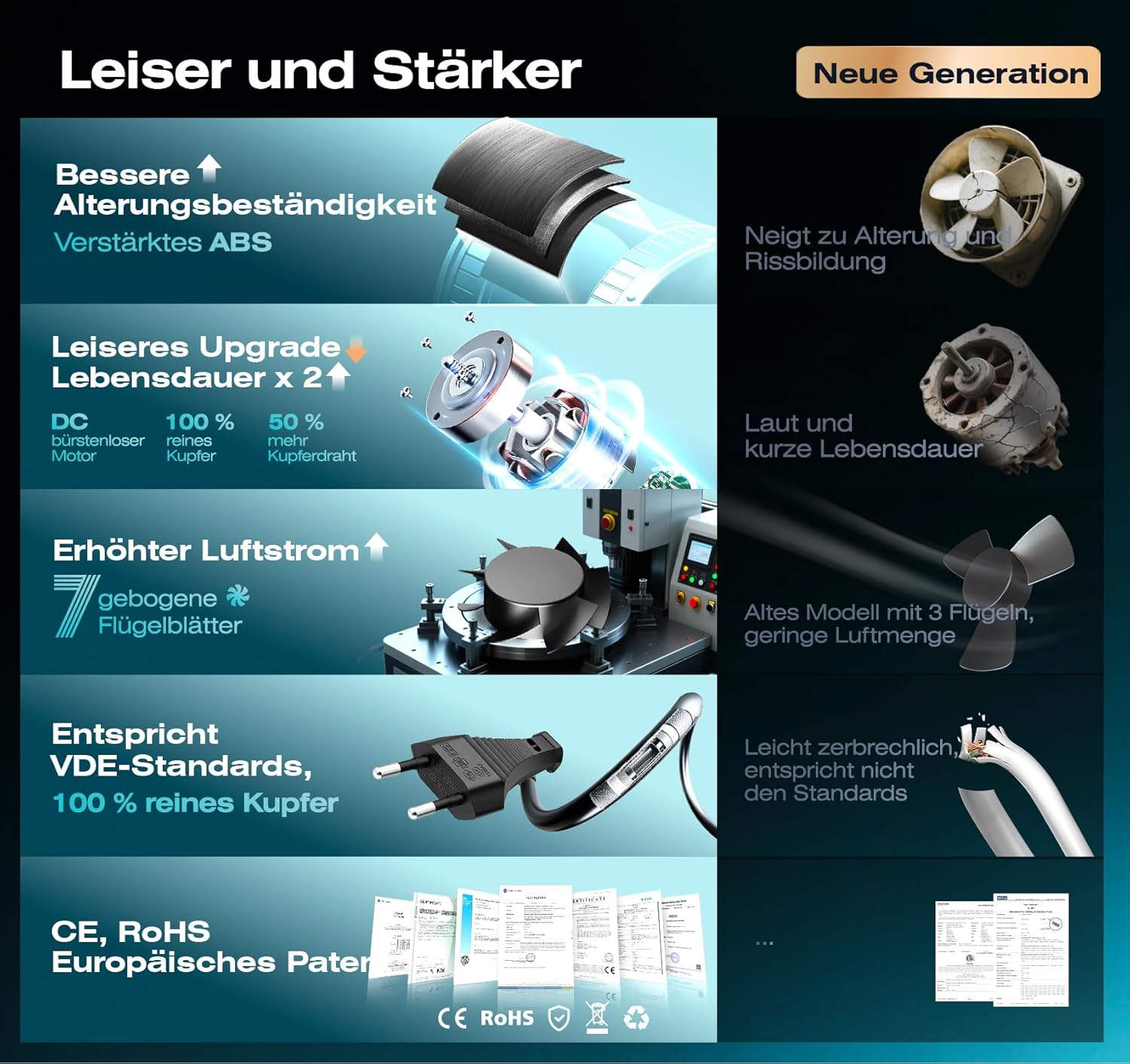 - Hochwertig, Langlebig & Energiesparend: Das zuluft ventilator Gehäuse besteht aus verstärktem ABS-Material – alterungsbeständig, rissfest und äusserst langlebig. Der bürstenlose Motor hat eine Lebensdauer von über 30.000 Stunden – dreimal so